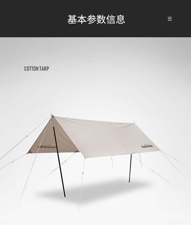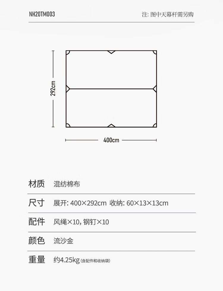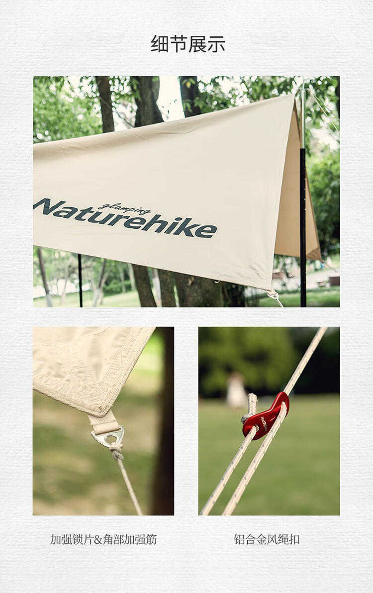Naturehike 挪客柔棉布方形天幕 加厚防晒凉棚野营露营大型遮阳棚 柔—方形流沙金(不含天幕杆)
