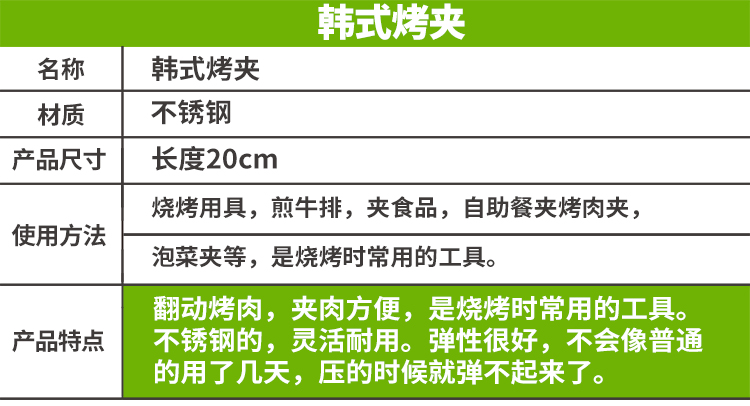 原始人 不锈钢韩式烤夹 不锈钢食品夹子烧烤配件 烧烤工具