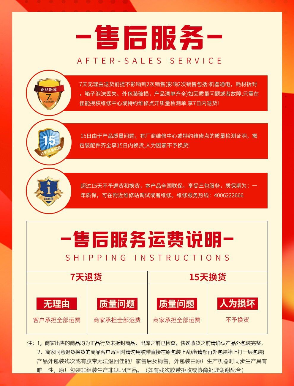 包装内容: ①打印机 ②电源线 ③打印头 ④初始原装墨水盒 ⑤USB电缆线 ⑥保修卡 ⑦手册、其他文档