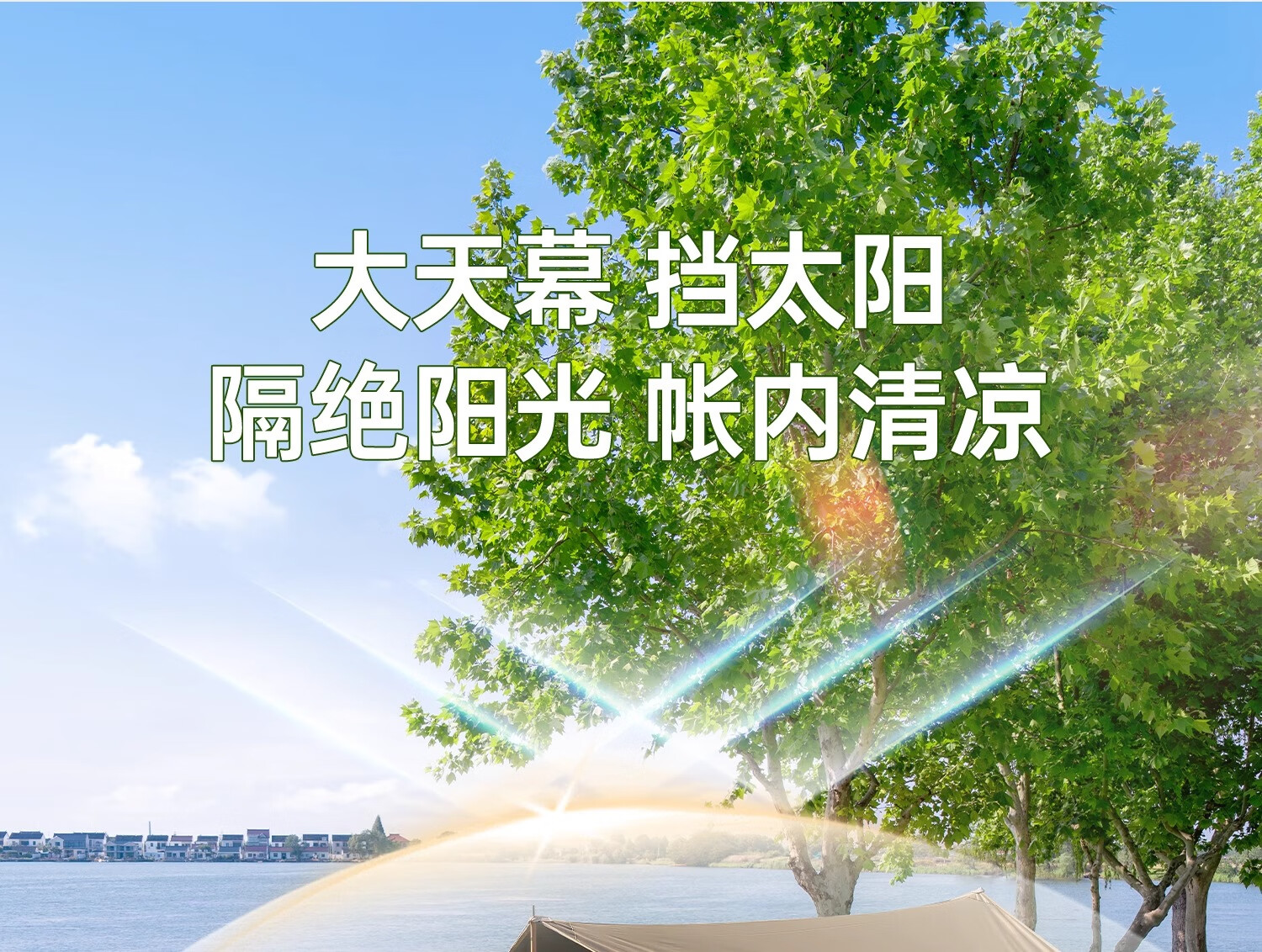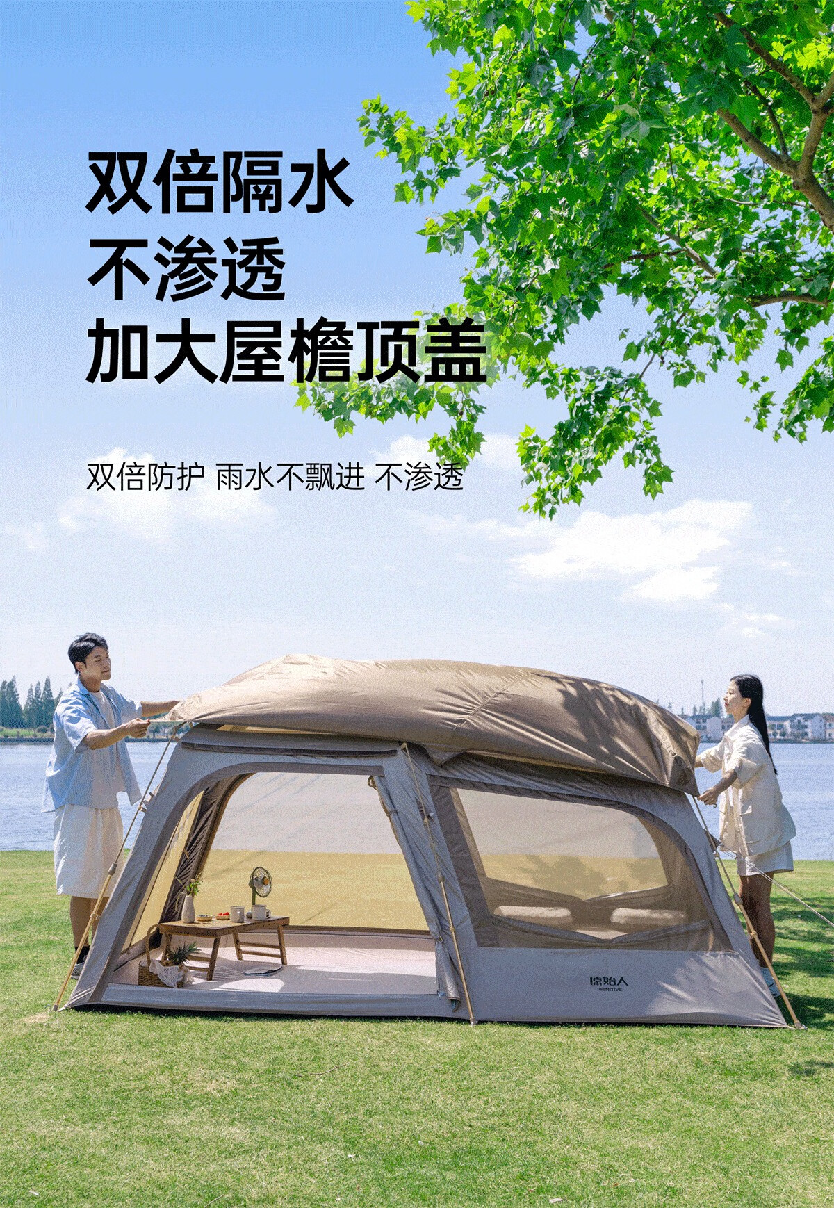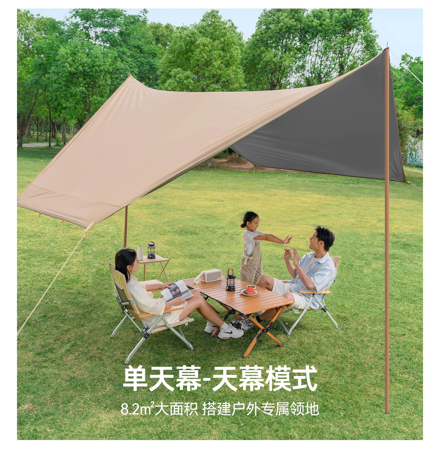 原始人黑胶天幕帐篷户外露营便携防雨过夜折叠野营新款天幕二合一防暴雨 奶咖天幕帐篷-天幕可拆分使用