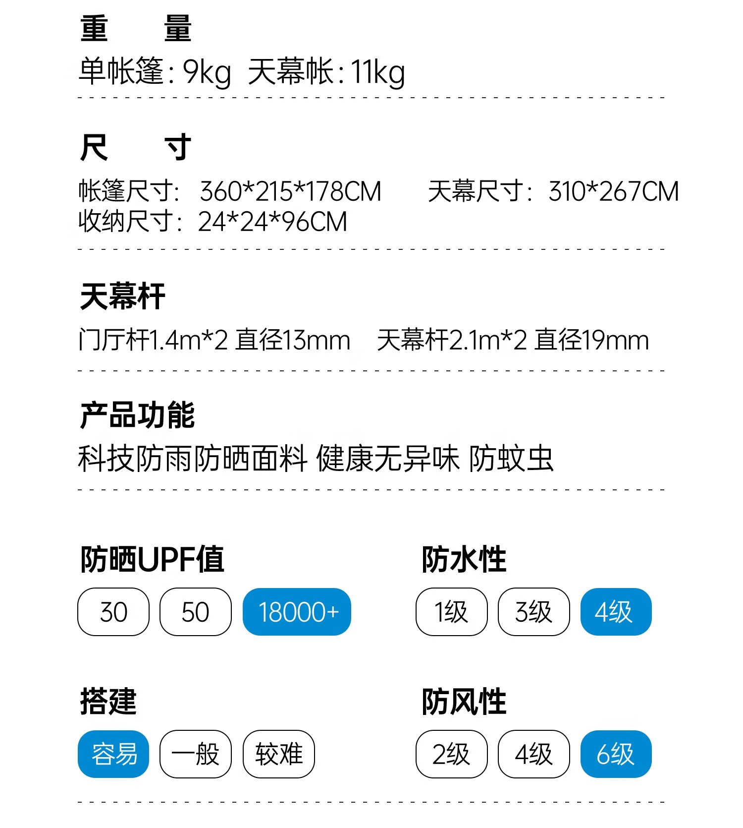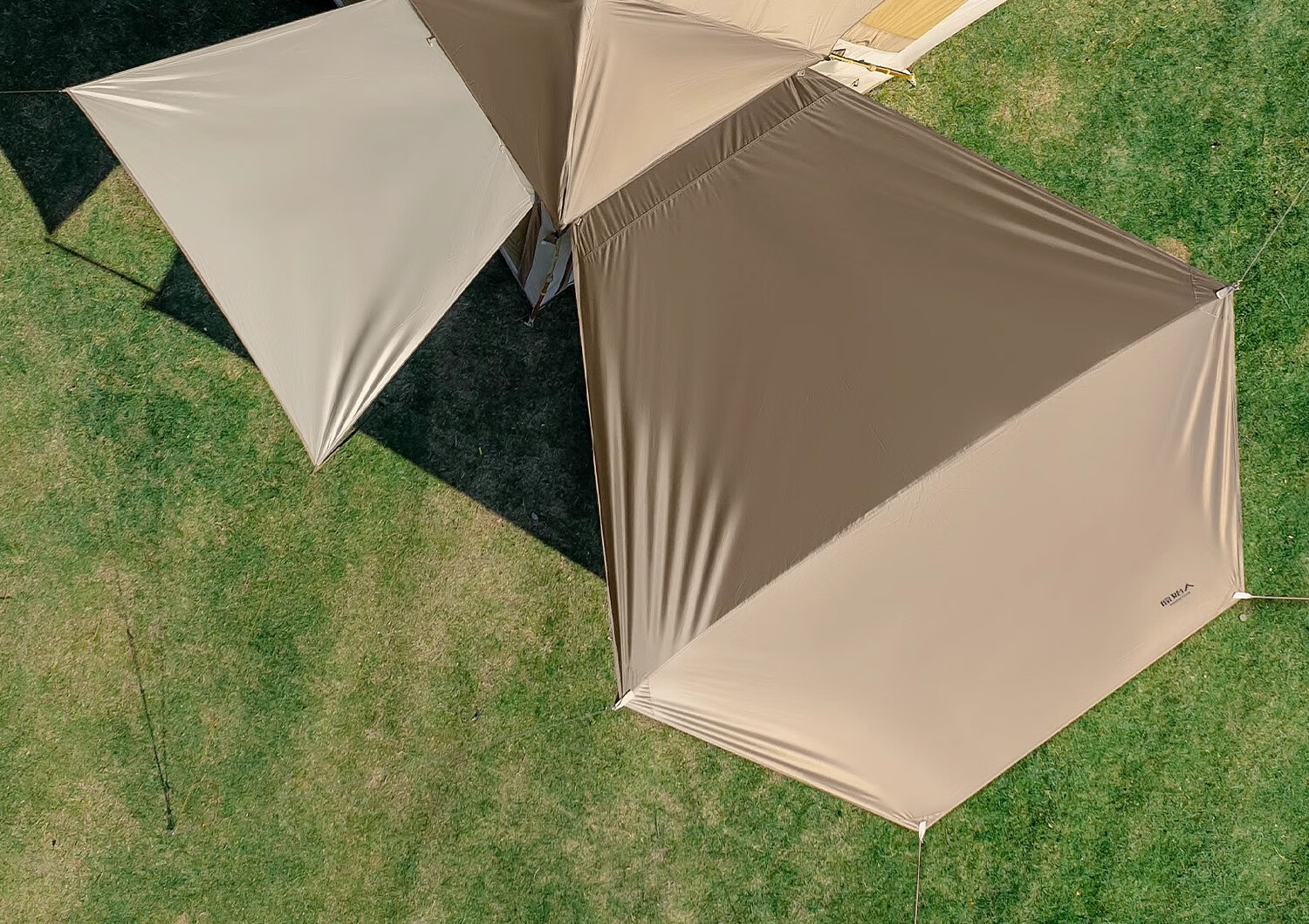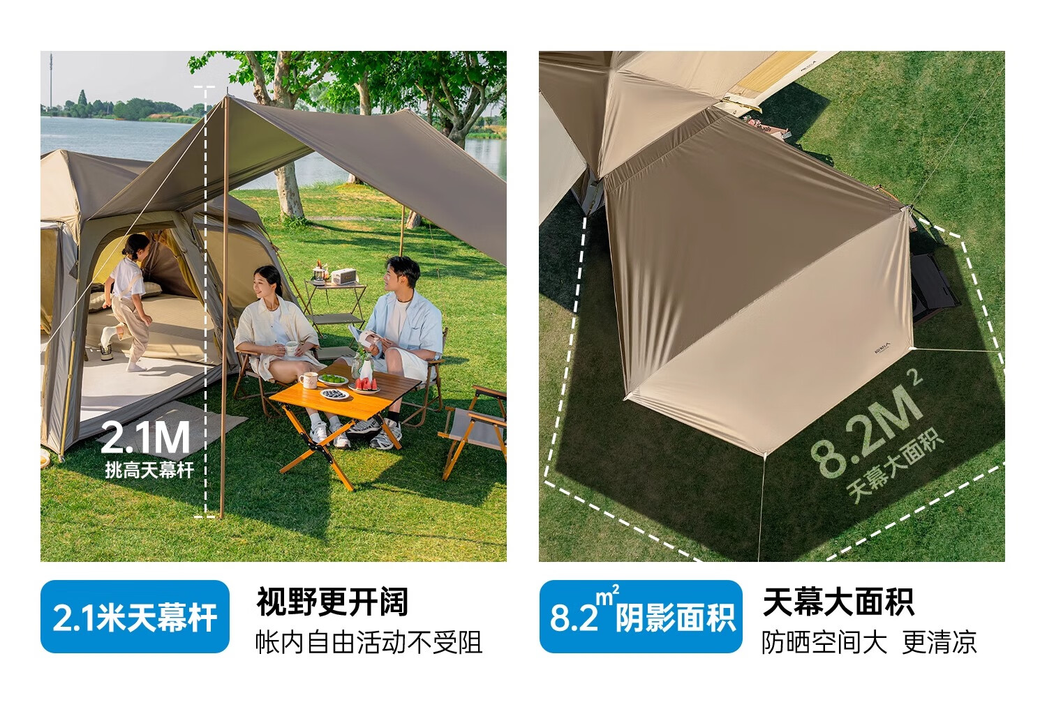 原始人黑胶天幕帐篷户外露营便携防雨过夜折叠野营新款天幕二合一防暴雨 奶咖天幕帐篷-天幕可拆分使用