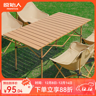 原始人户外折叠桌露营桌椅蛋卷桌便携桌子野餐野营椅子用品大全装备全套 88款【2-4人】木色-赠收纳包