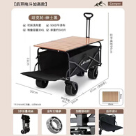 野徒者露营车户外推车野餐车儿童可躺露营装备折叠摆摊营地车小买菜车 曜石黑-16寸【飞机轮】+90桌面 升级后开门款