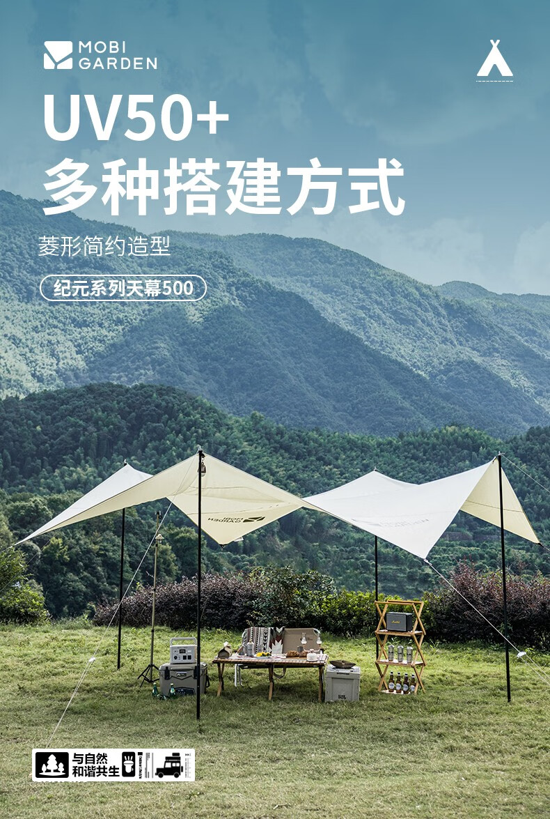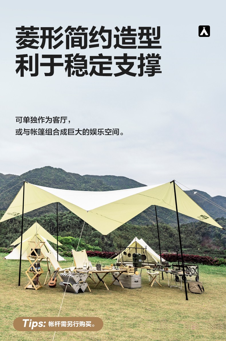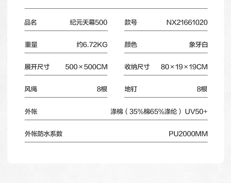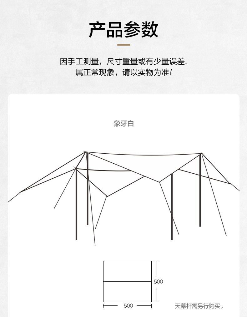 牧高笛(MOBIGARDEN)天幕 户外露营多人大空间遮阳棚防雨棉布大天幕纪元500 象牙白(无支撑杆)