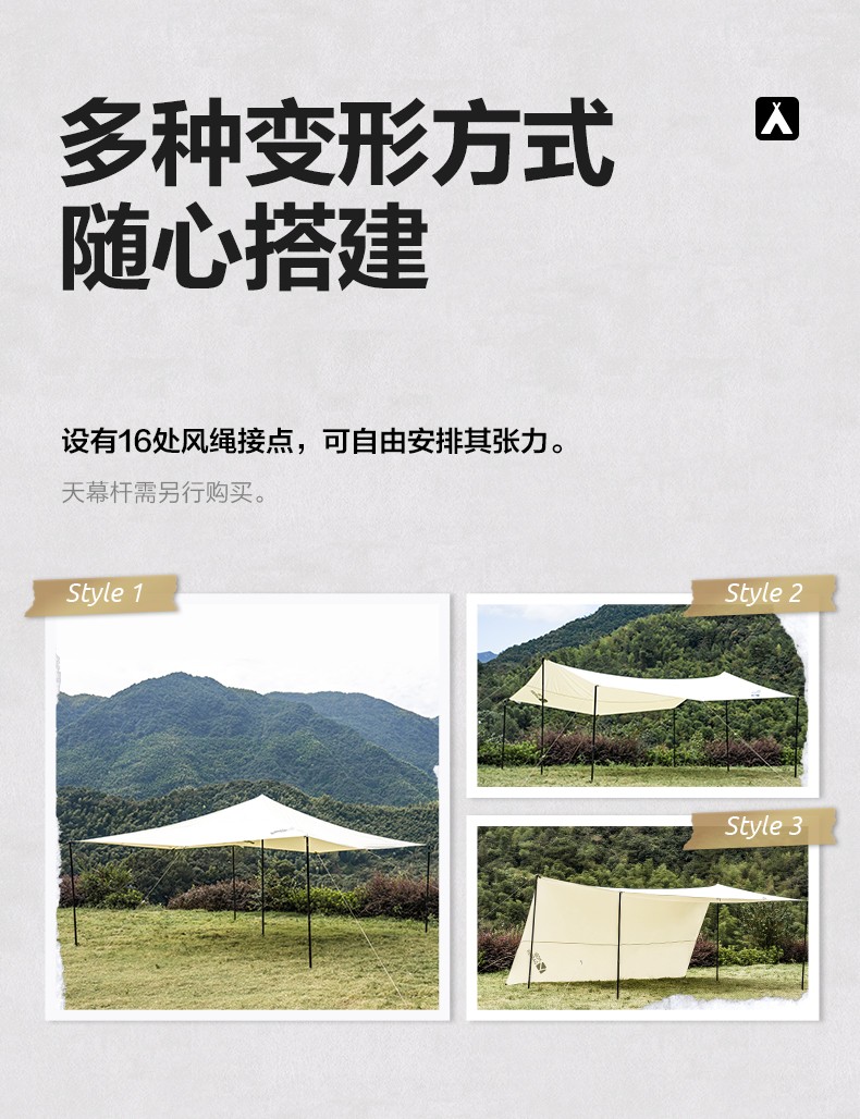ETROL'庇护所天幕多挂点户外露营帐篷黑胶涂层防水地垫防晒遮阳棚 PU款琥珀黄4*4m[无杆配风绳地钉]