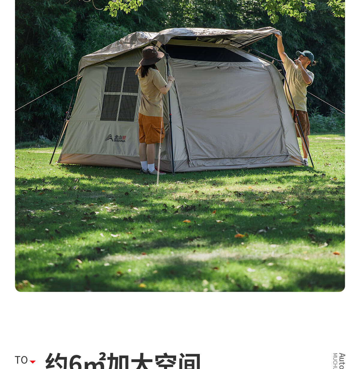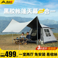 北山狼全自动黑胶户外帐篷天幕二合一便捷式可拆卸防雨防晒过夜露营天幕 【加大号5-8人】茶褐色黑胶帐篷