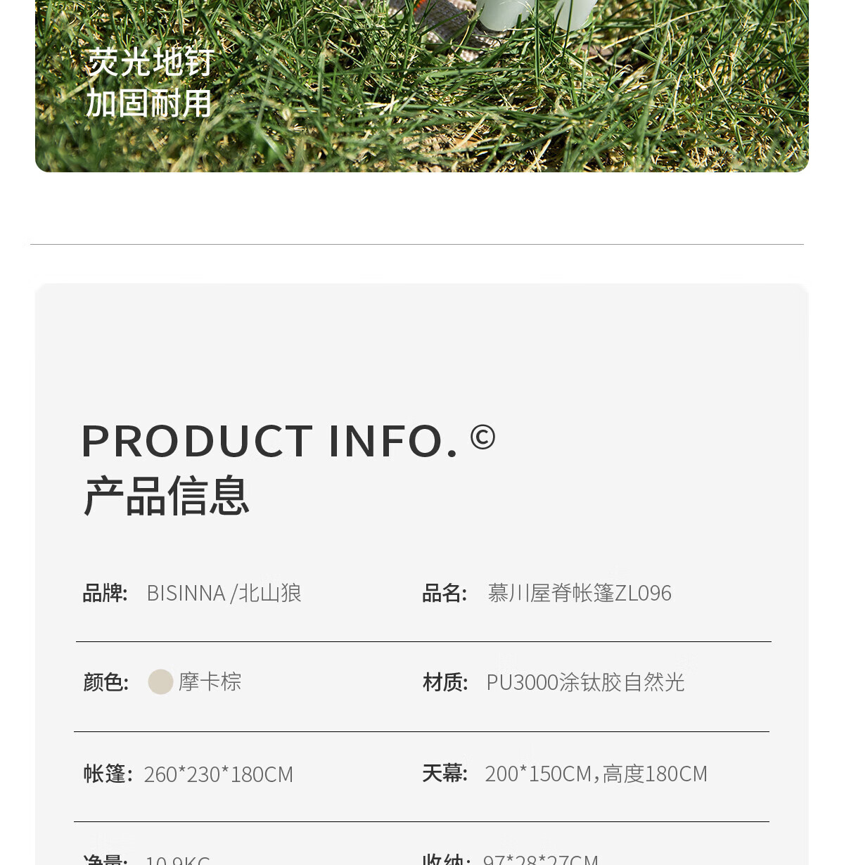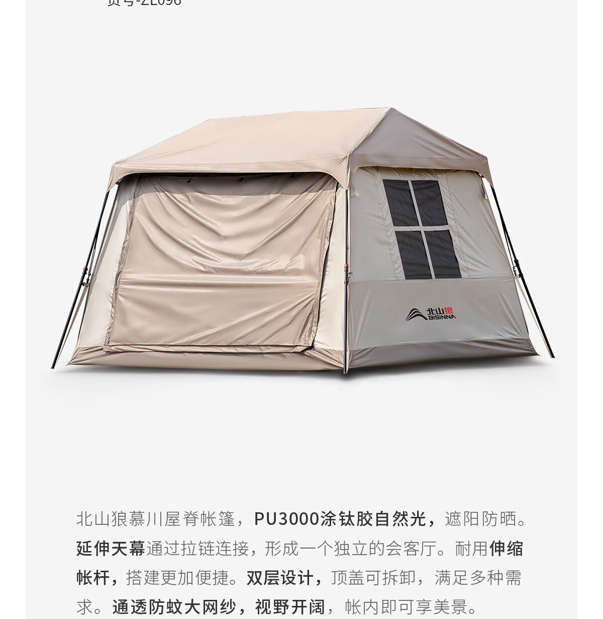 北山狼户外屋脊帐篷全自动免搭 便捷式双层加厚露营帐篷天幕二合一 摩卡棕
