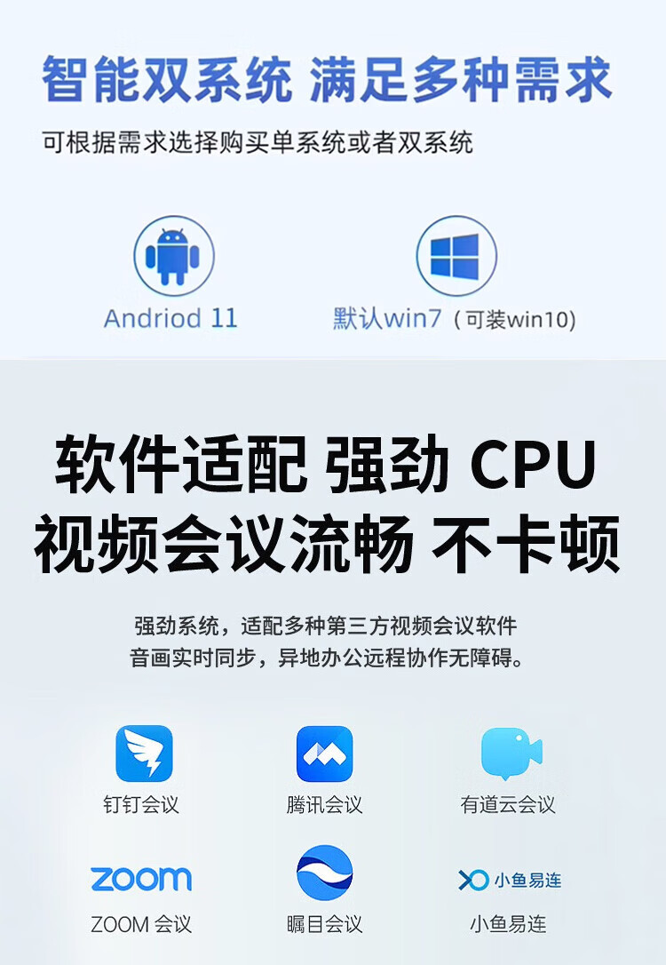 会议一体机视频会议平板多媒体教学一体机触摸屏电脑智能互动电子白板 会议触控大屏100寸 86寸会议一体机 安卓系统+推车