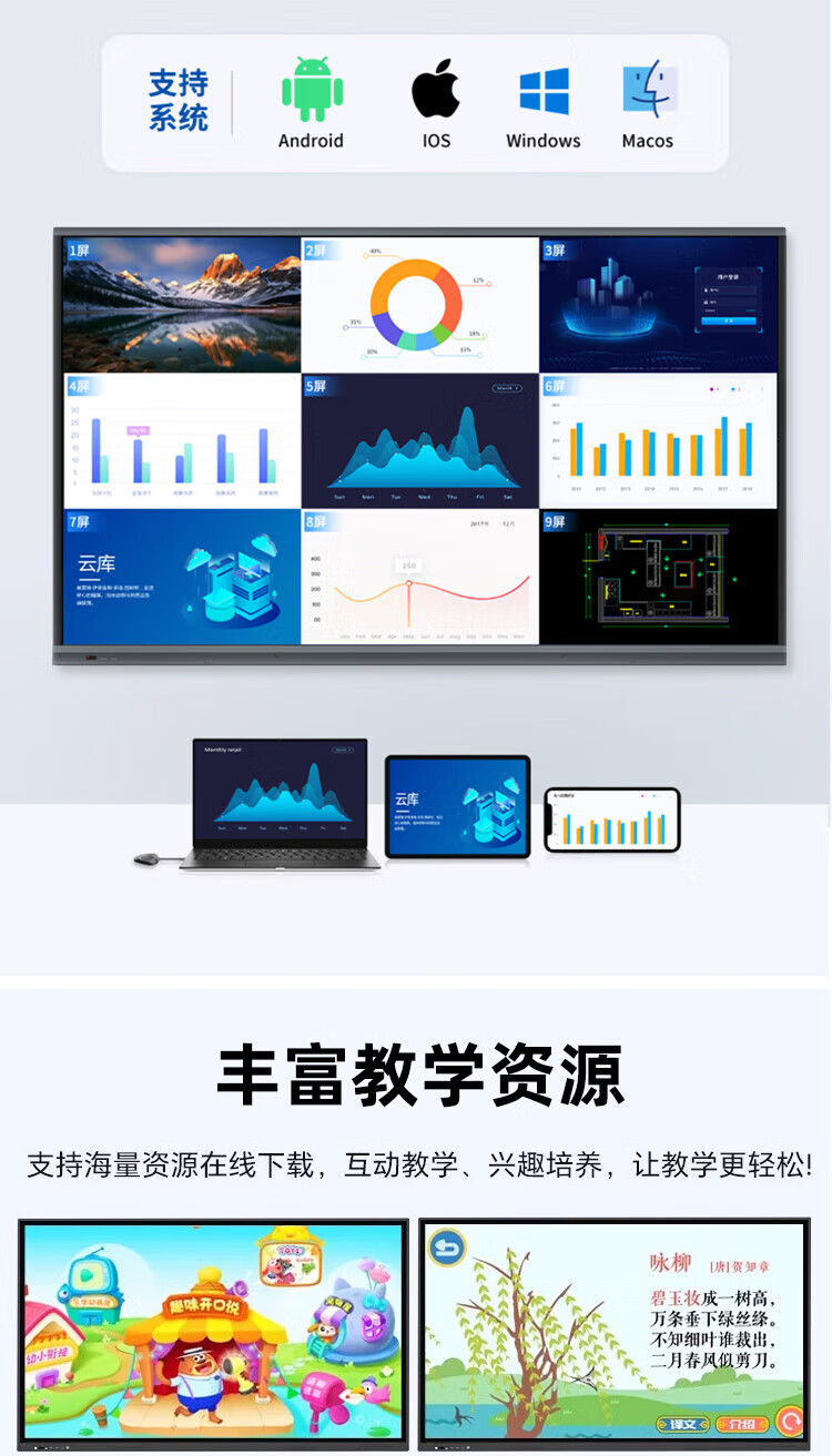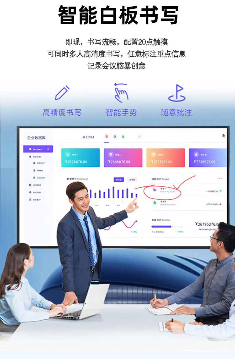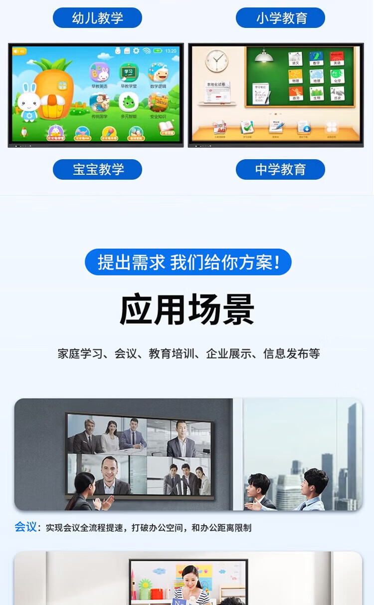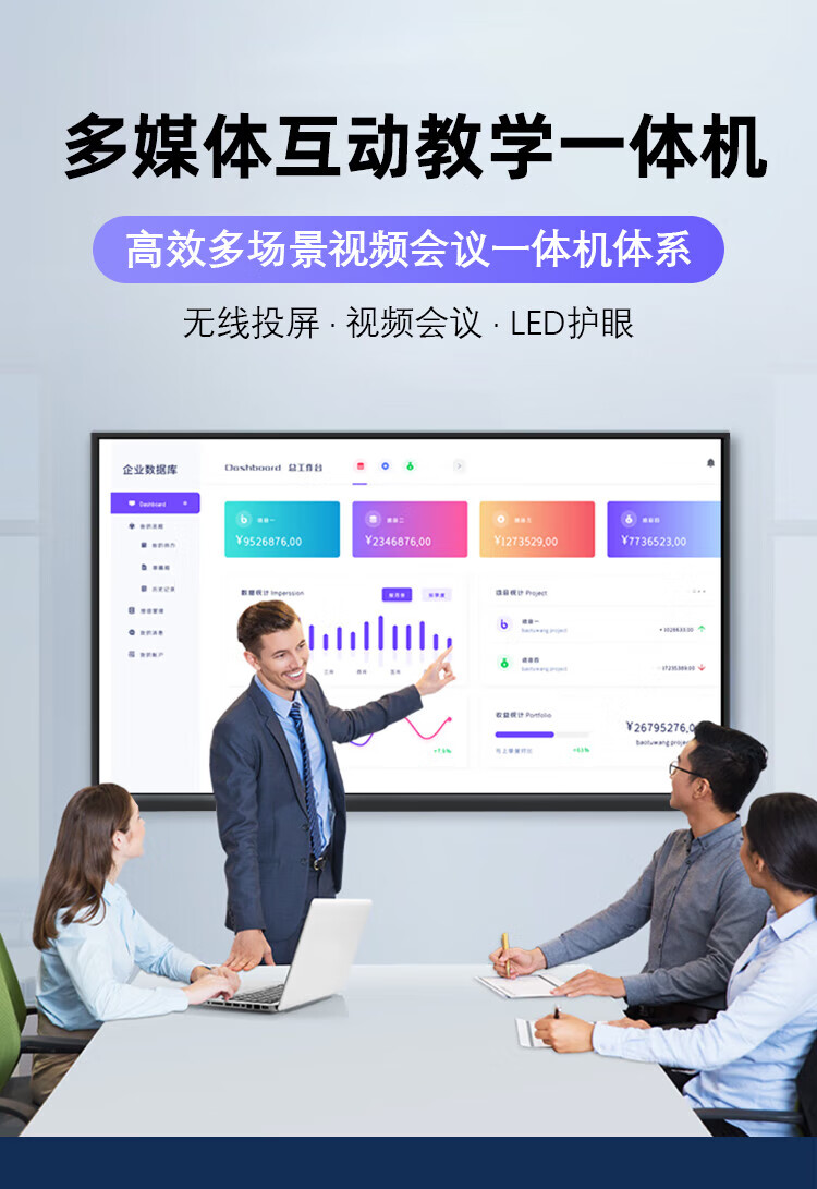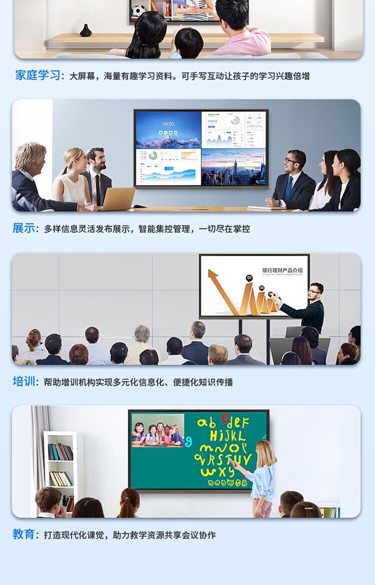 会议培训一体机平板电视屏超清多媒体教学一体机触摸控屏无线投屏显示器会议室手写电子白板学校家用幼教学机 55英寸教学会议机【护眼带蓝牙】+壁挂架 安卓13.0【4G+32G】