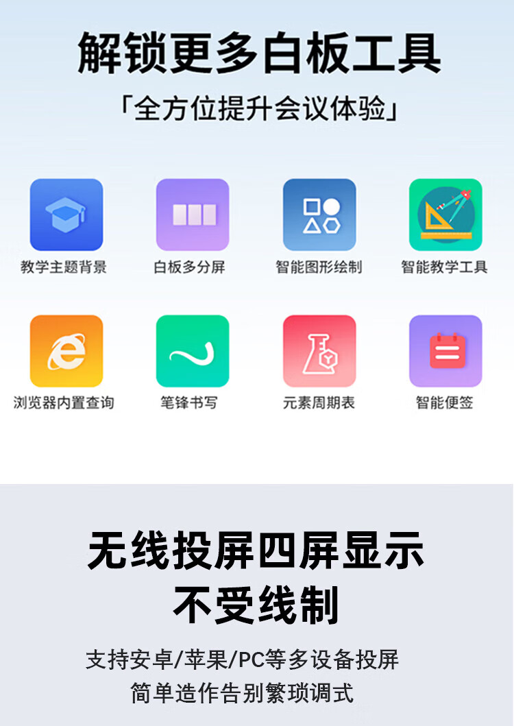整体评价:客服耐心回复,积极帮忙解决问题。很不错。 外观款式:外观大气,挺喜欢的。 运行速度:提升了系统,效果满意 功能设计:教学必备功能都有,授课方便