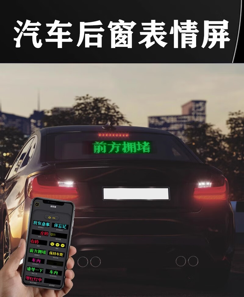 车载柔性LED屏车载后窗led显示屏车载软屏车贴广告软屏双排滚动字幕表情恶魔之眼 双排显示32*96像素(48x20cm)