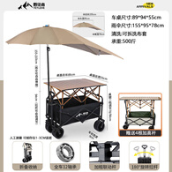 疆屿户外折叠露营车营地车可折叠户外野营野餐摆摊儿童可躺 卡其拓野款+桌面+黑胶遮阳伞