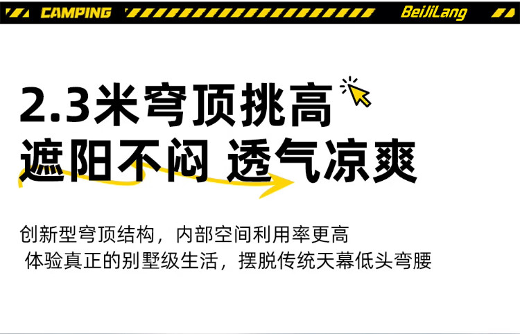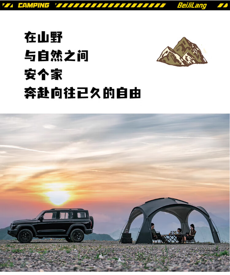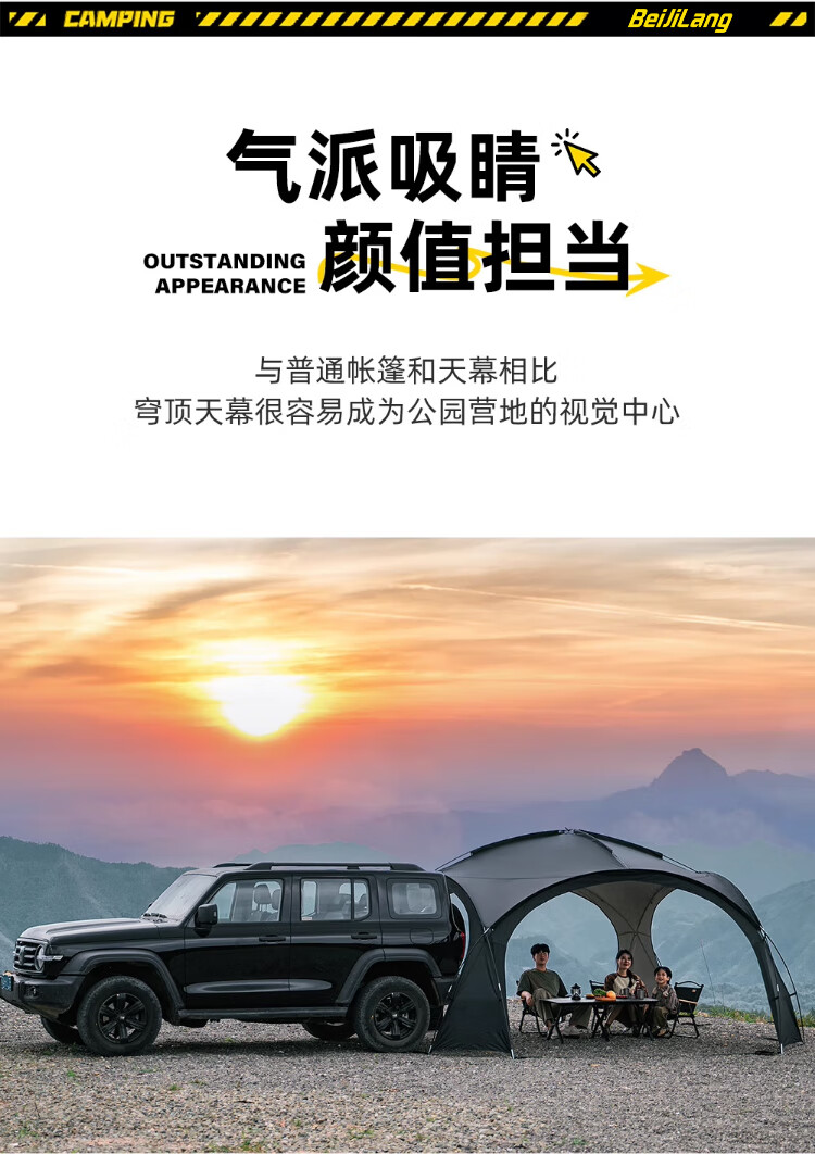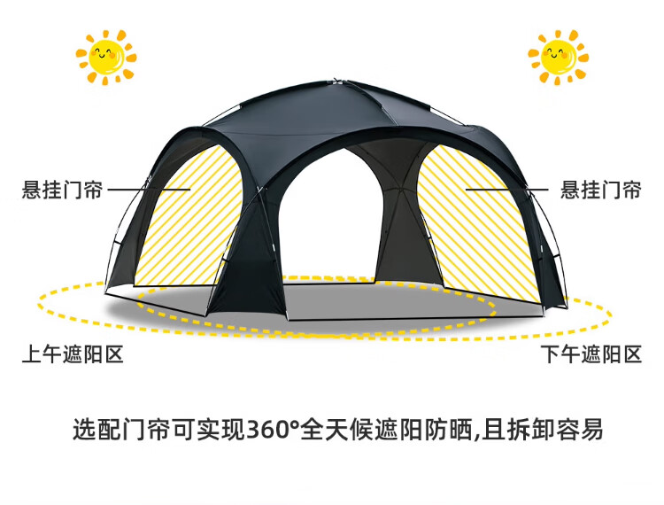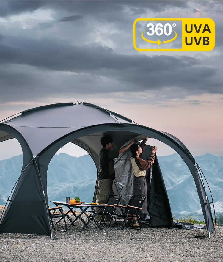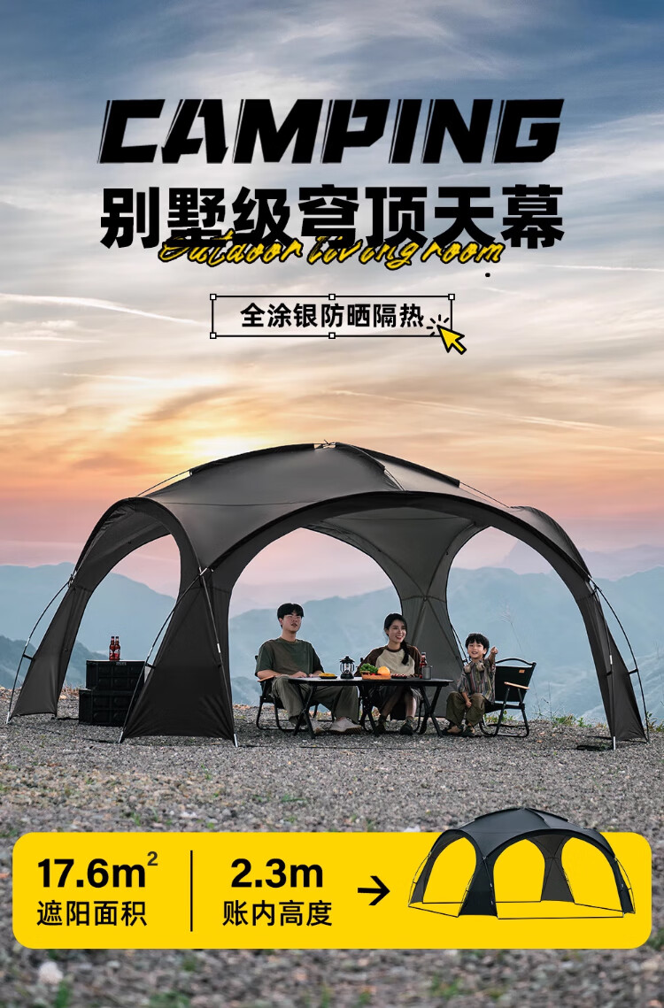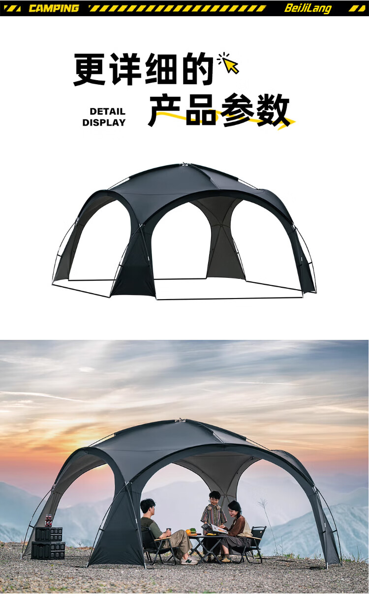 北山狼 穹顶天幕户外露营涂银防晒 凉亭超大帐篷防风防水 野营遮阳棚 碳黑大号-布面门帘