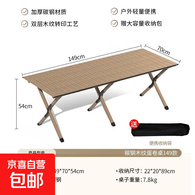 碳钢蛋卷桌花园露天摆摊便携折叠桌烧烤钓鱼户外露营野餐桌单桌 原木色月亮桌149*70*54cm