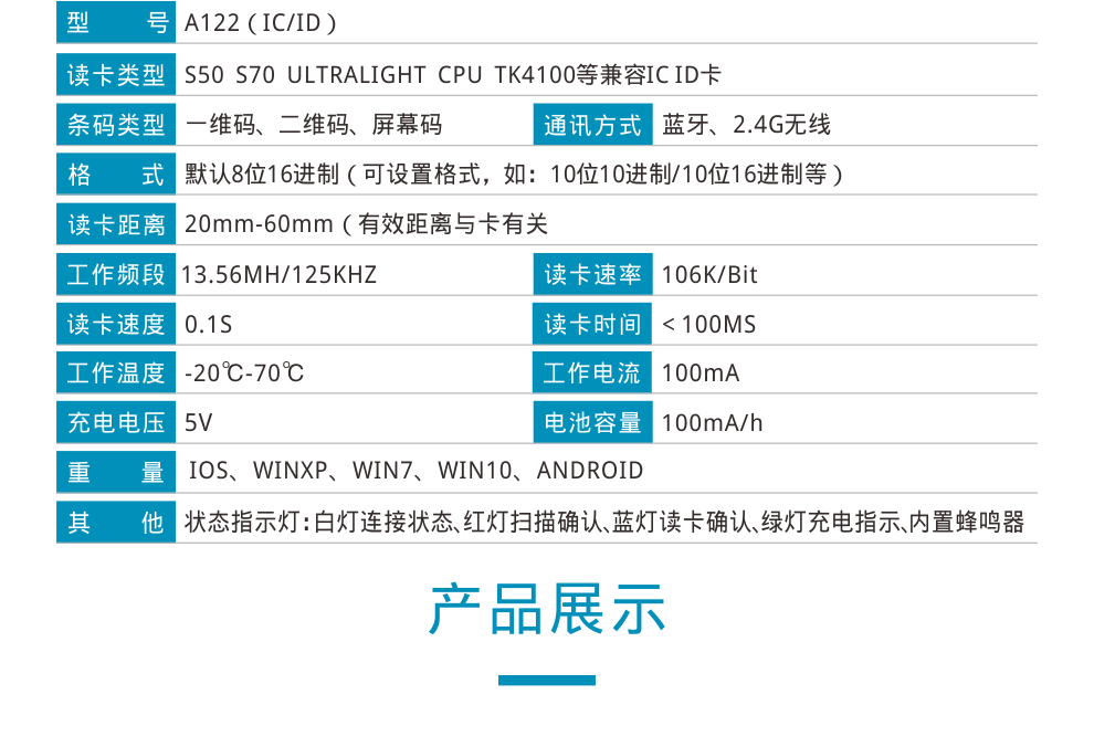 配合平板电脑实现车间QC查货RFID功能,数据采集方便分析。比之前手写报告更清晰明了。这个设备识别条码与ID卡,小巧方便,就是有点贵,希望店家能给些优惠