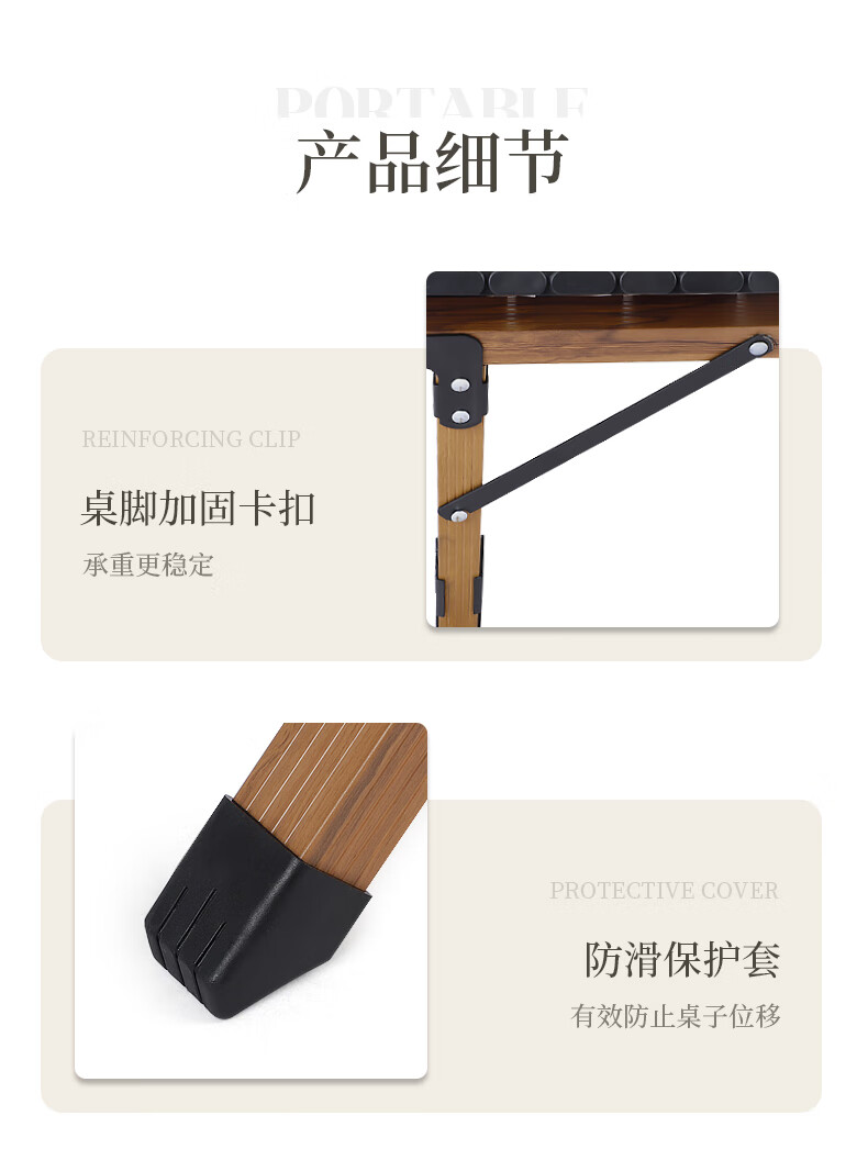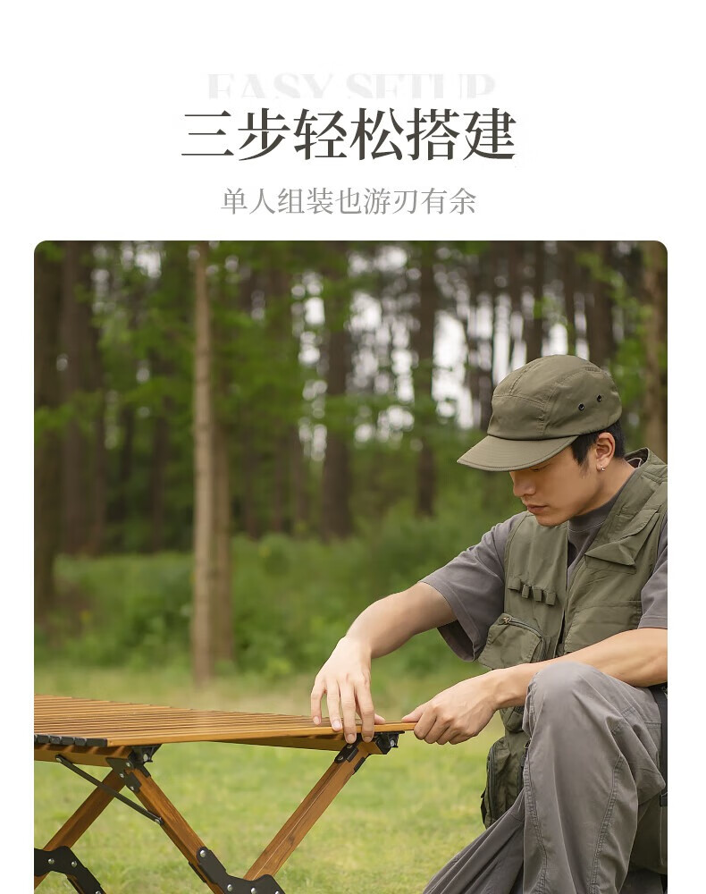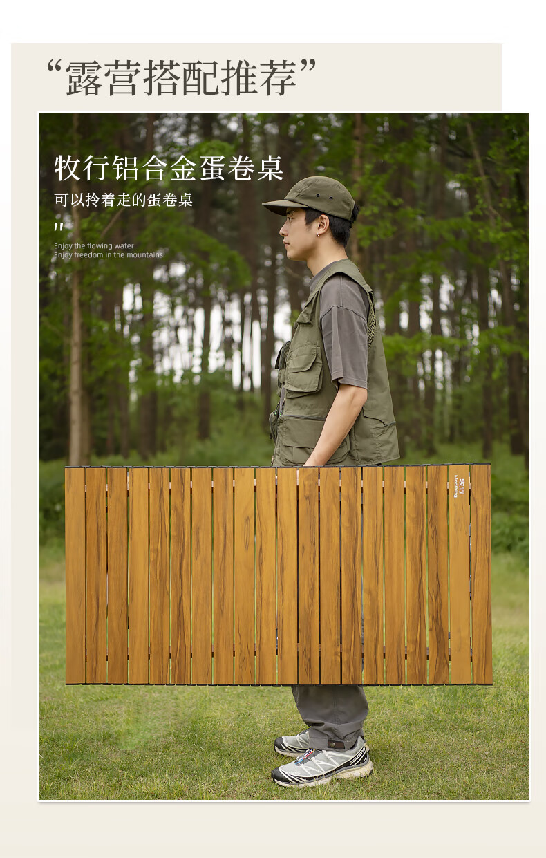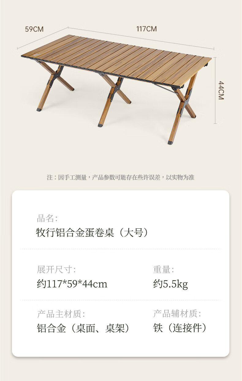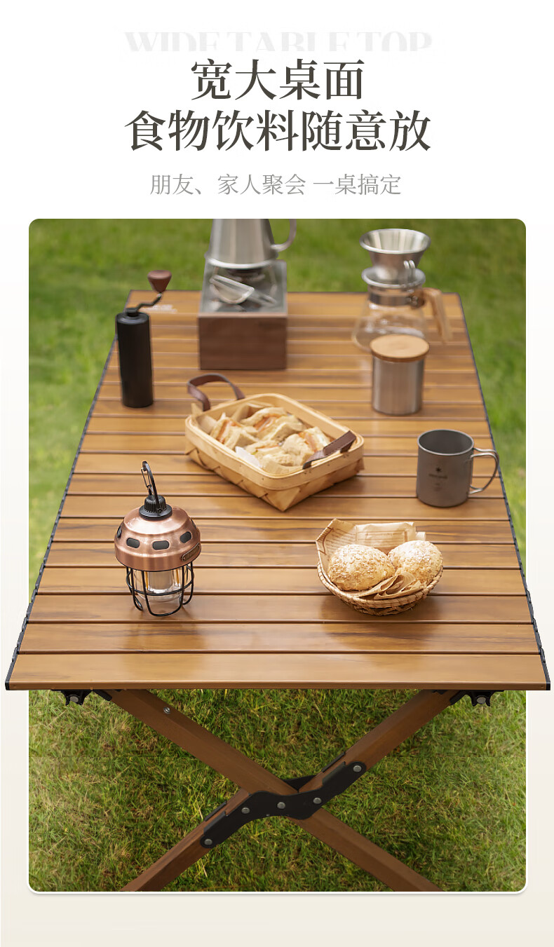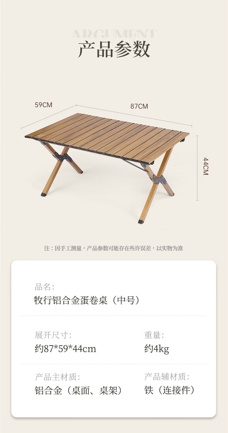 黑鹿(BLACKDEER)木纹铝合金蛋卷桌 户外露营折叠桌椅 便携式露营烧烤野餐折叠桌子 木纹蛋卷桌120款+宅宅椅玄米白*4