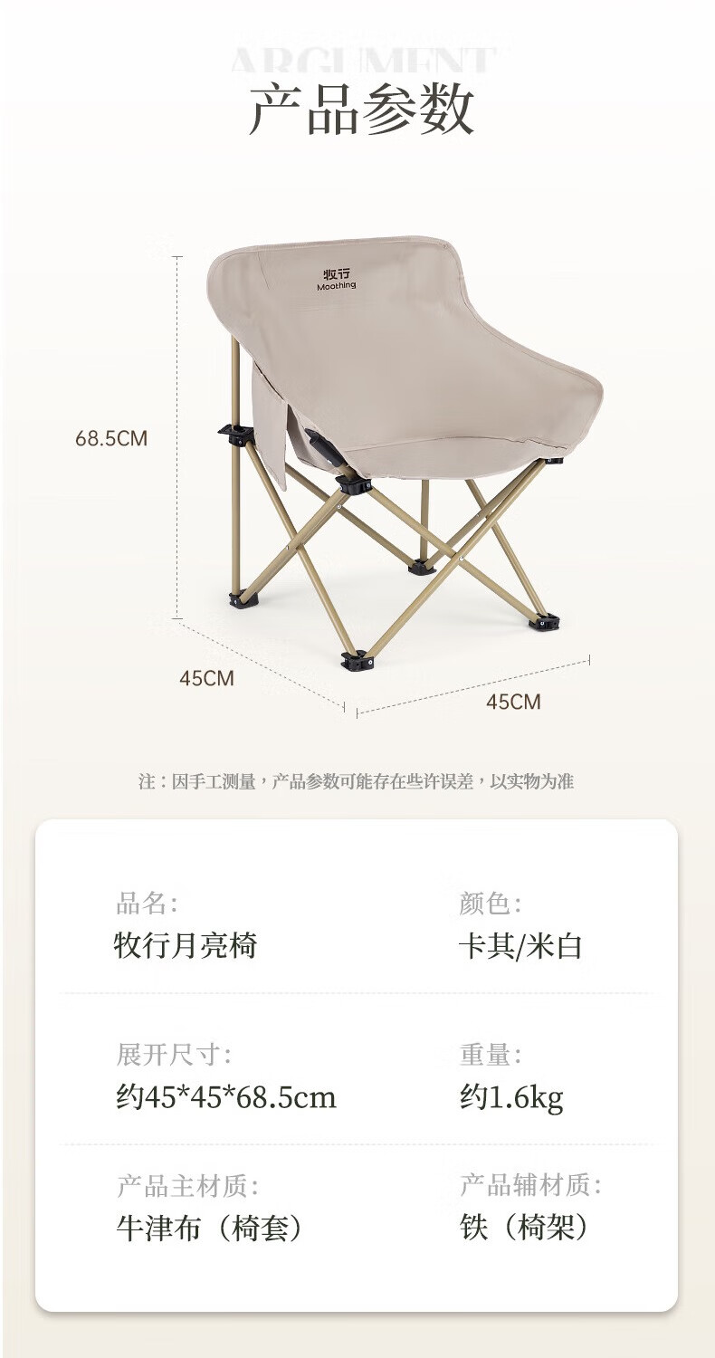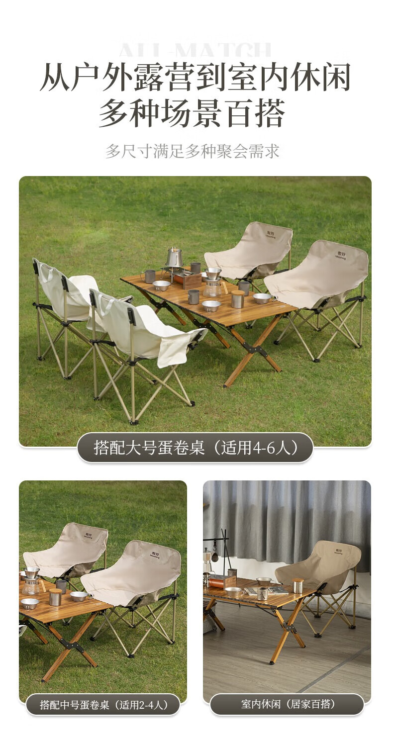 牧行月亮椅户外折叠椅儿童野餐露营椅子便携钓鱼凳 90cm碳钢蛋卷桌+卡其月亮椅*2