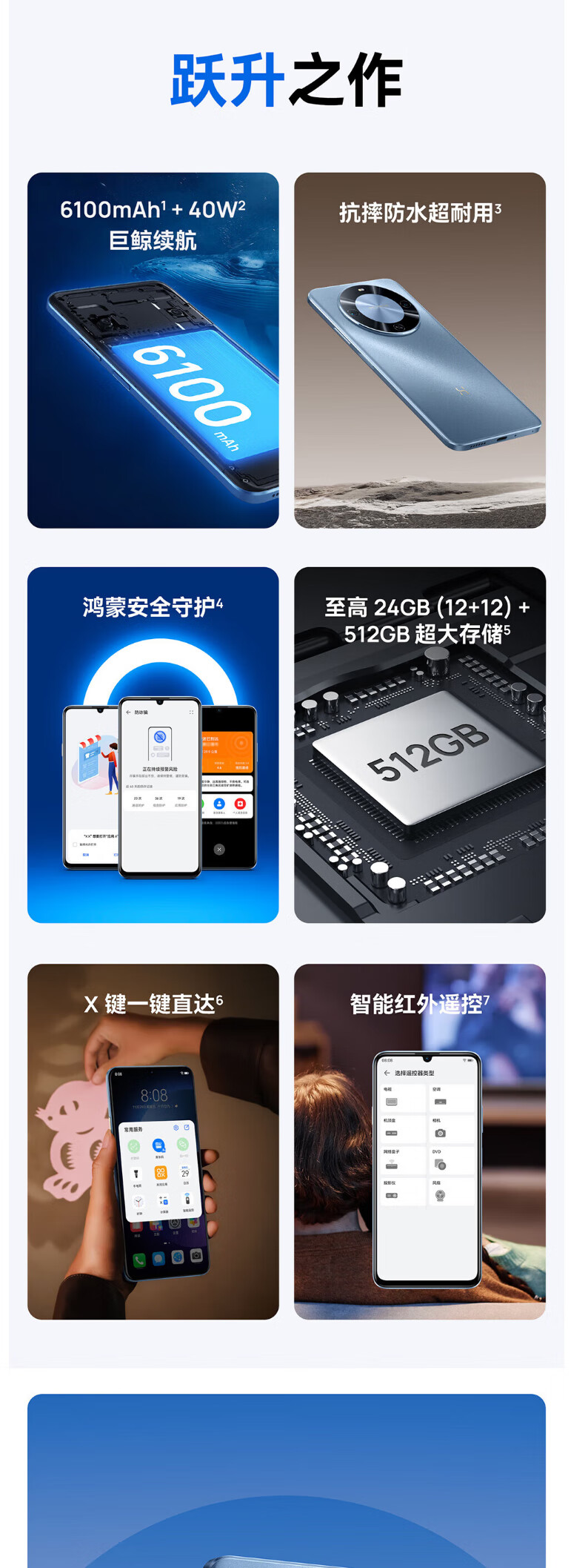 华为(HUAWEI)畅享70X 巨鲸长续航 双曲护眼屏 五星超耐摔 鸿蒙系统曲面屏 雪域白 512GB 单机+原线原充+全国联保