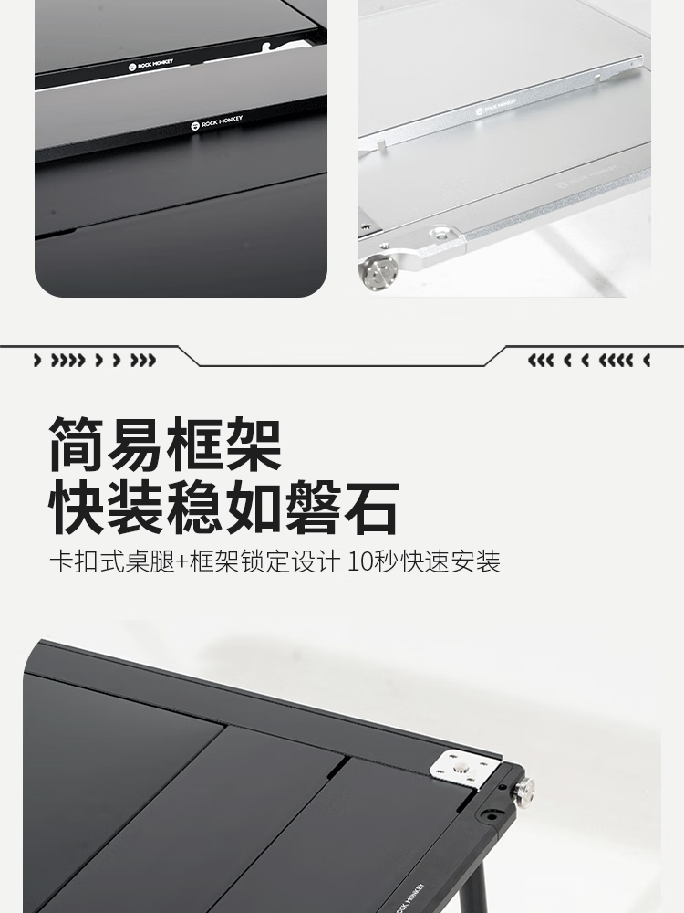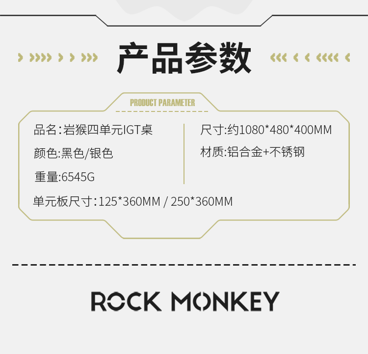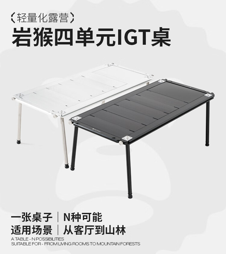 ROCK MONKEYROCKMONKEY岩猴户外IGT露营桌四单元铝合金多功能战术便携野餐桌 【银色】四单元IGT露营桌(配收纳包)+送一单元玻璃板