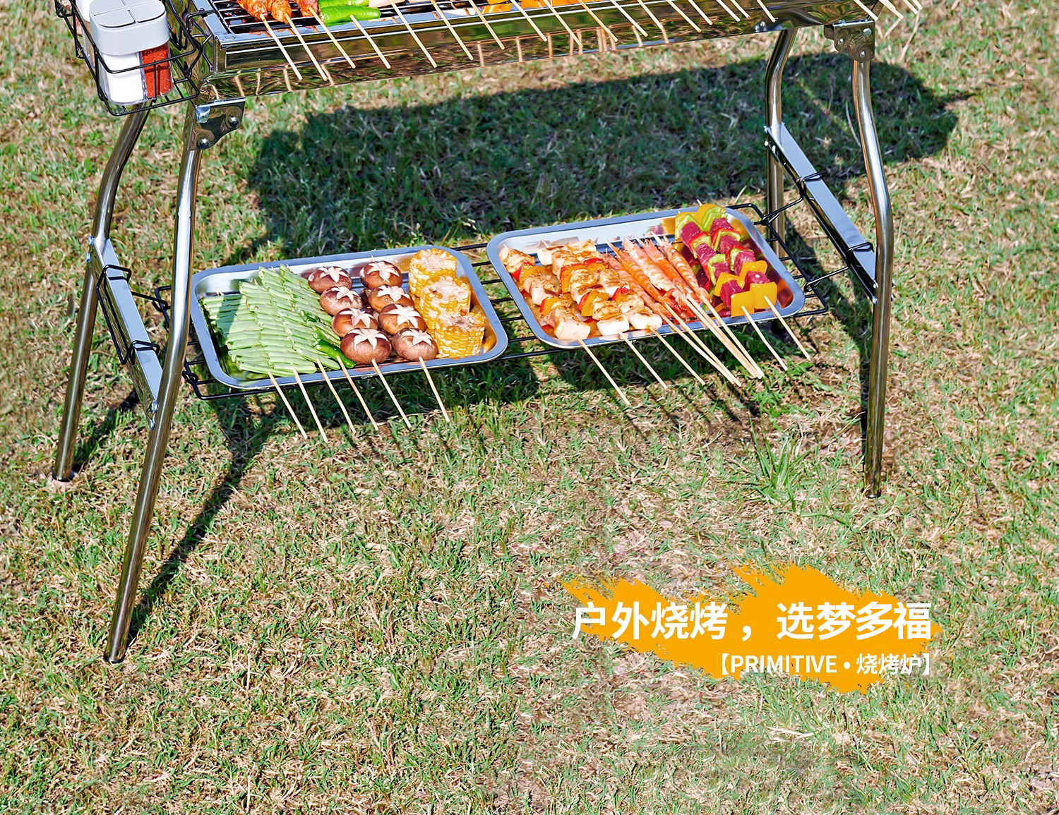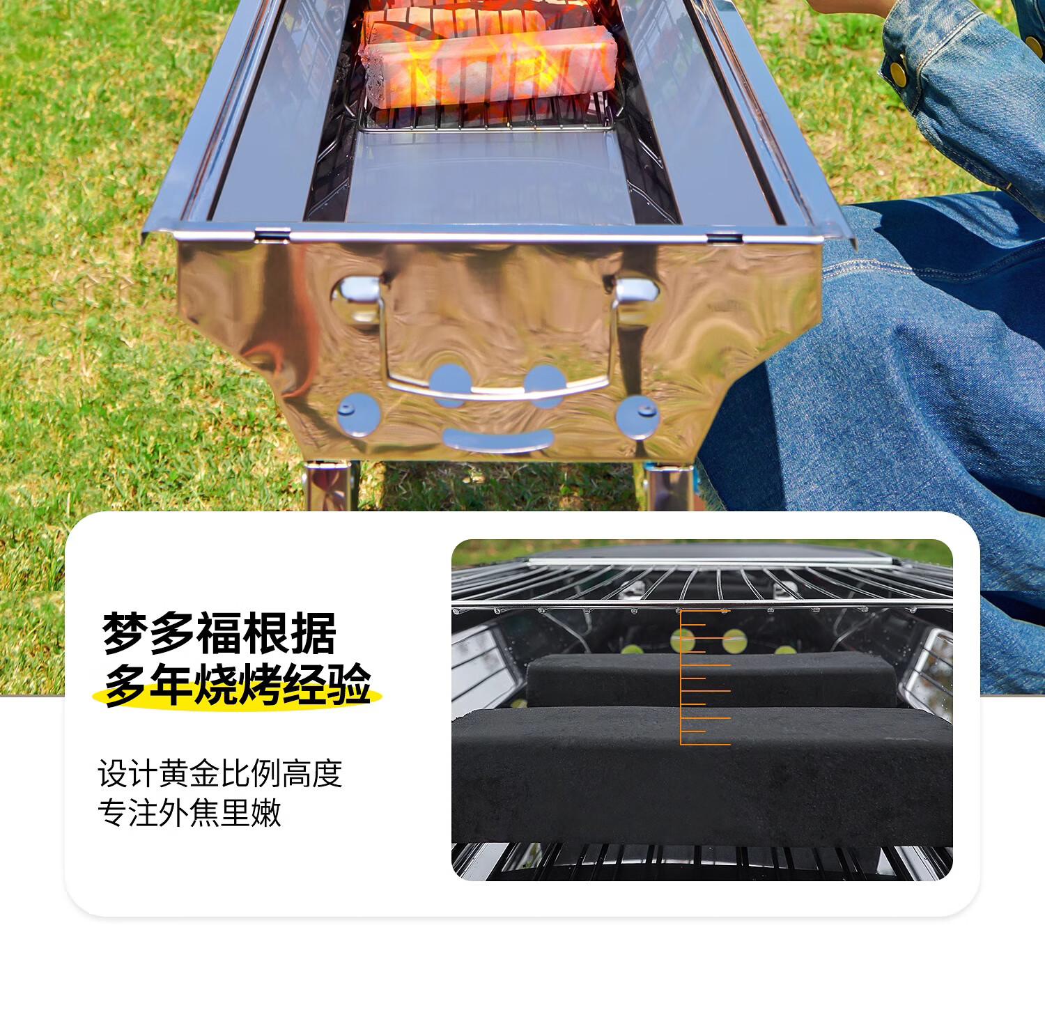 梦多福 烧烤架 烧烤炉家用户外烧烤架子折叠不锈钢烤炉 露营装备全套 顶配版+煎盘【超大号款】 常规款