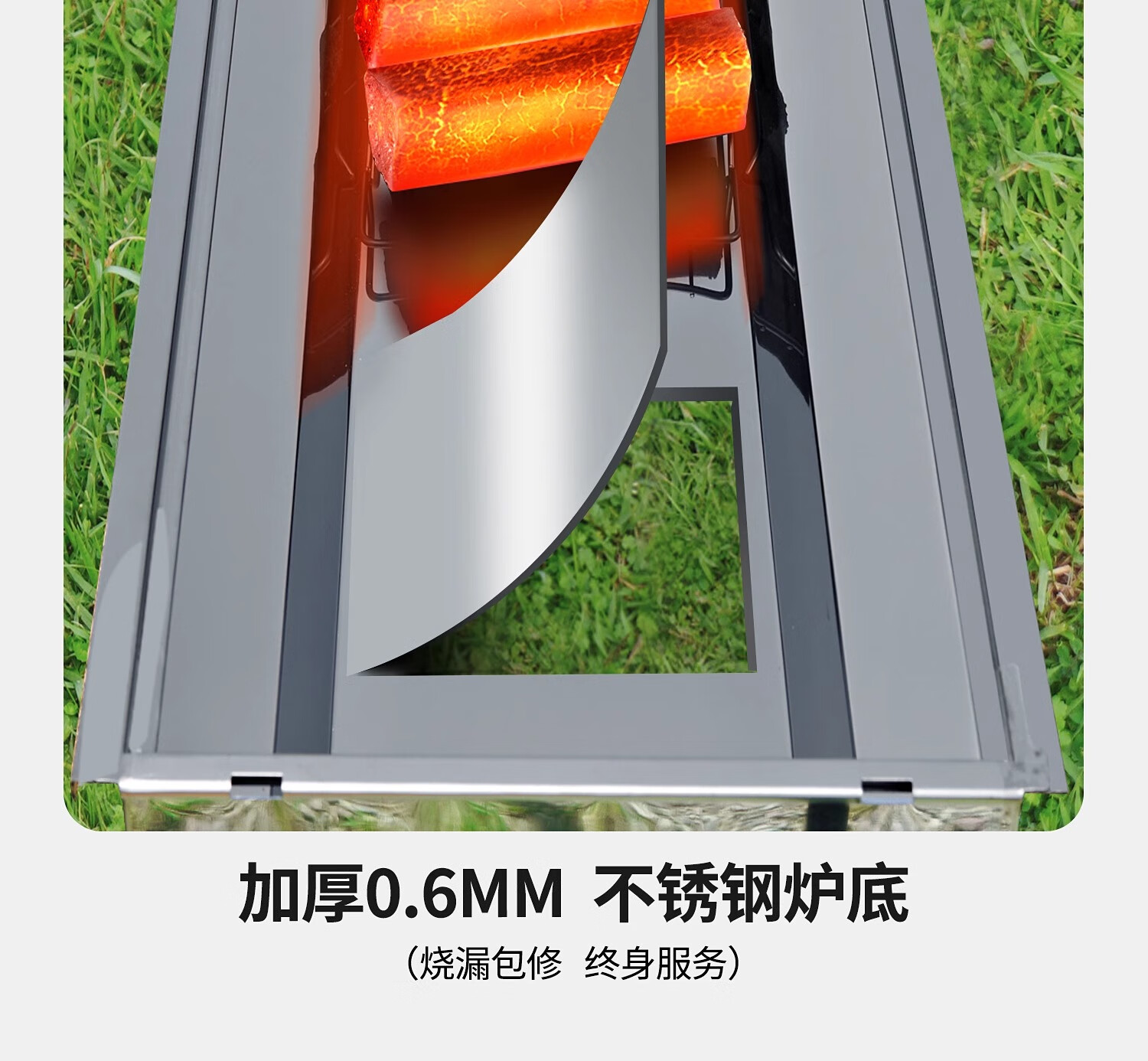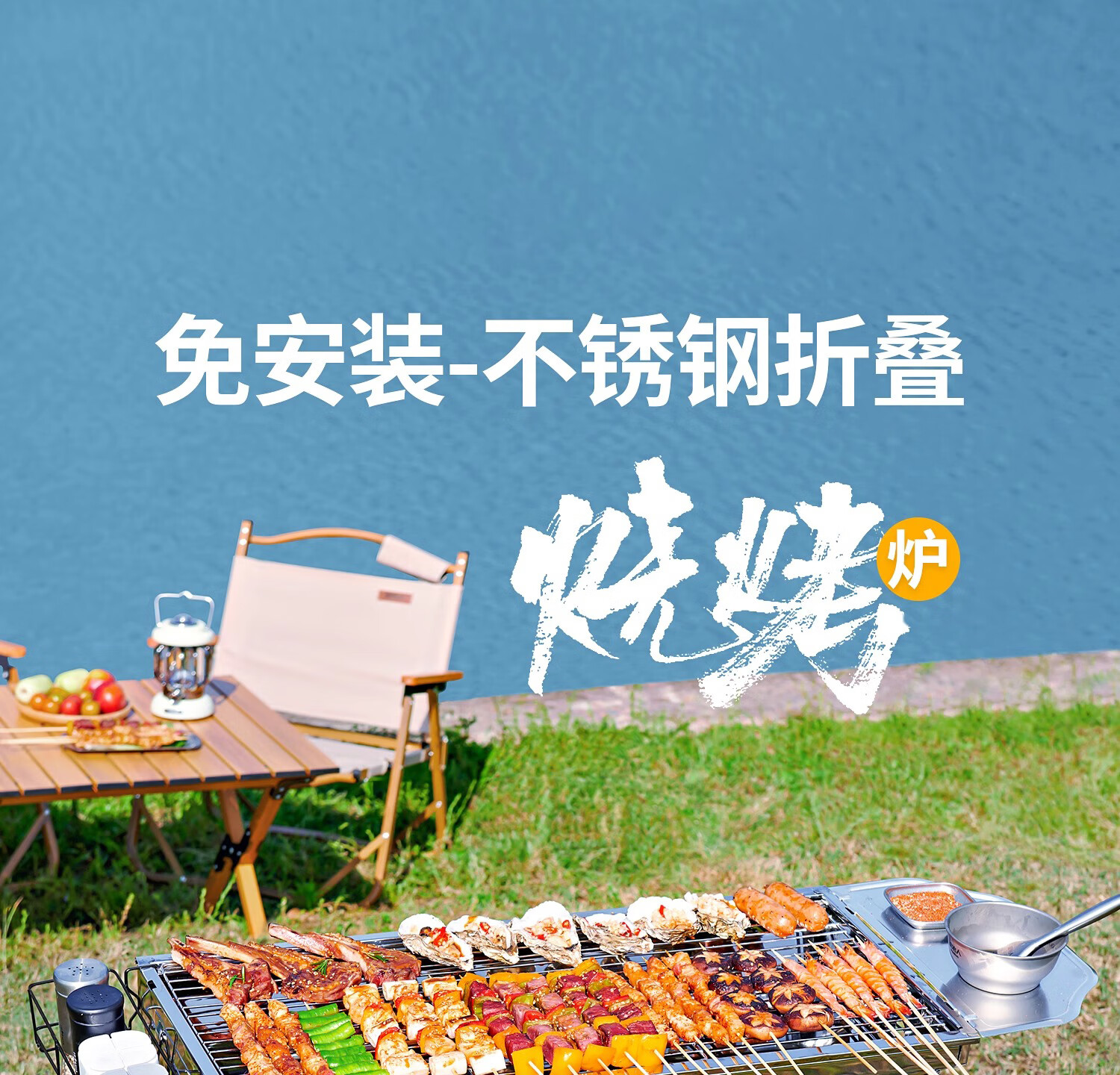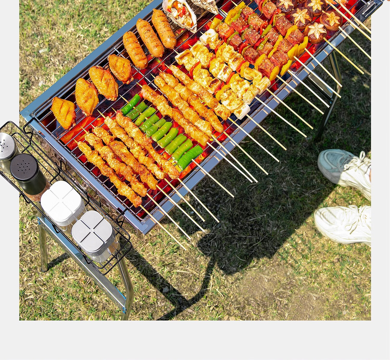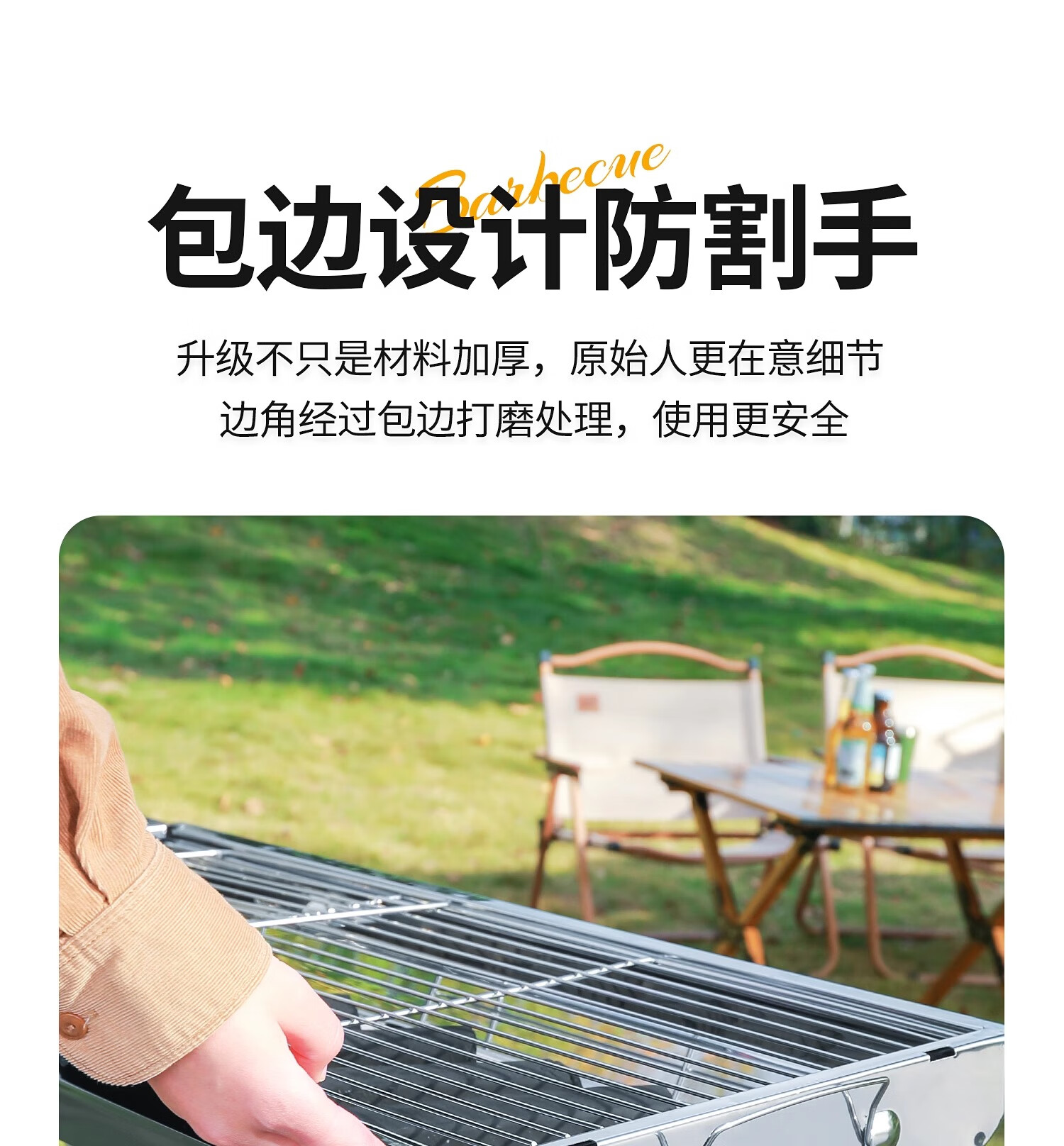 - 便携性出色:这款烧烤架的折叠设计太赞了,折叠起来后体积很小,携带方便,无论是放在汽车后备箱还是背包里都不占空间,轻松就能带到户外野餐、露营或朋友聚会的场地,真正实现了说走就走的烧烤之旅。 - 搭建与收纳简单:展开和组装非常容易,无需复杂的工具和步骤,几秒钟就能搭建好,使用完后收纳起来也很快,即使是力气较小的女生也能轻松操作,非常适合户外出行使用。 - 稳固性强:别看它折叠起来小巧轻便,展开使用时却非常稳固。加厚的炉体和精心设计的支撑结构,让烧烤架在烧烤过程中稳如磐石,即便是在风稍大的环境下也能安心烧烤,完全不用担心会晃动或倾倒。