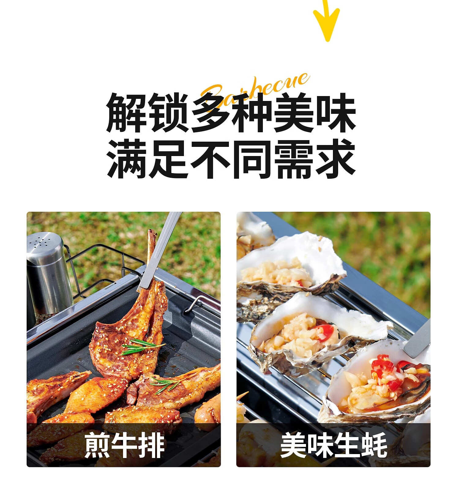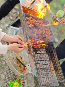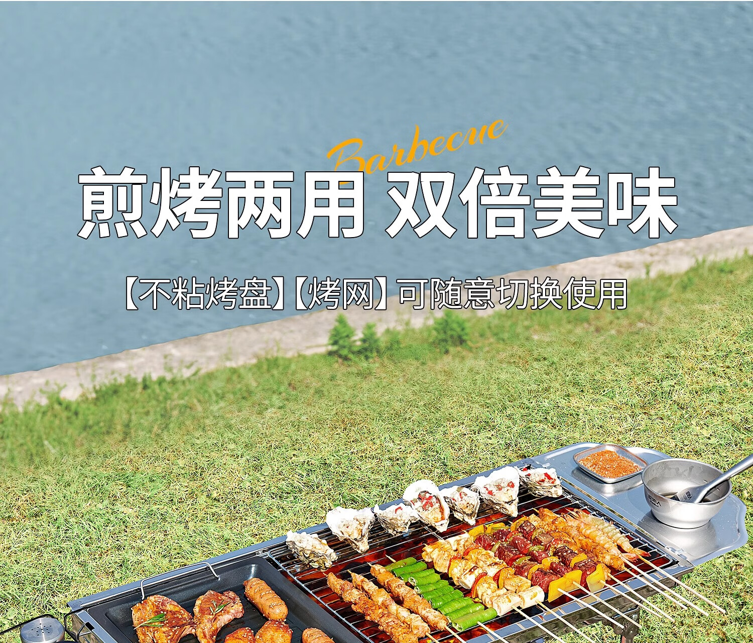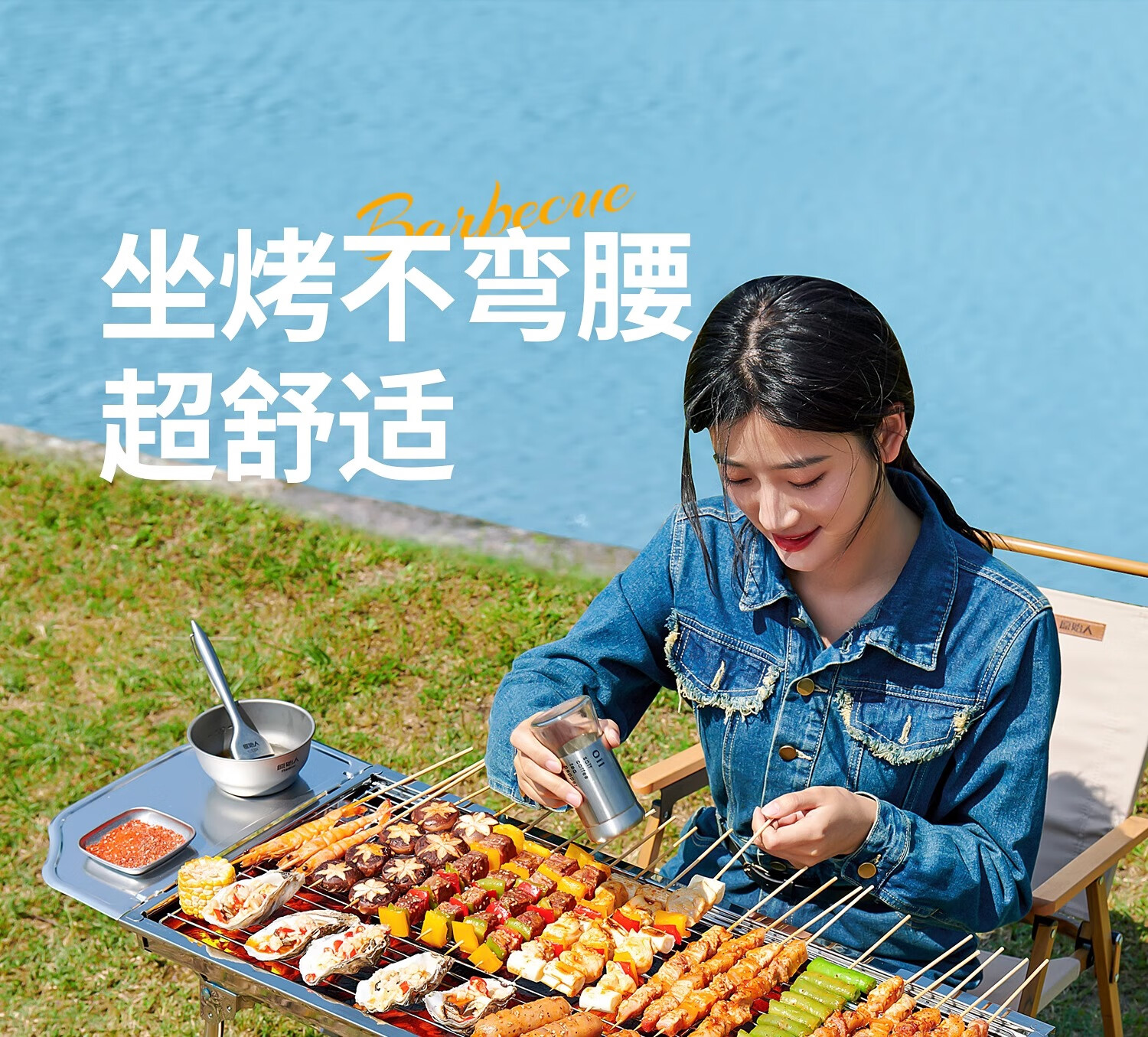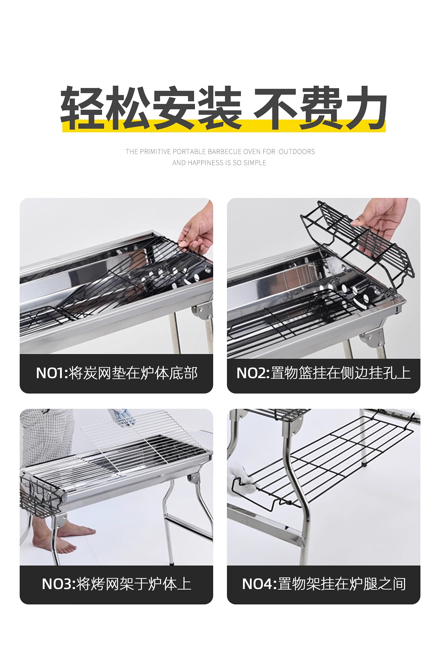 - 便携性出色:这款烧烤架的折叠设计太赞了,折叠起来后体积很小,携带方便,无论是放在汽车后备箱还是背包里都不占空间,轻松就能带到户外野餐、露营或朋友聚会的场地,真正实现了说走就走的烧烤之旅。 - 搭建与收纳简单:展开和组装非常容易,无需复杂的工具和步骤,几秒钟就能搭建好,使用完后收纳起来也很快,即使是力气较小的女生也能轻松操作,非常适合户外出行使用。 - 稳固性强:别看它折叠起来小巧轻便,展开使用时却非常稳固。加厚的炉体和精心设计的支撑结构,让烧烤架在烧烤过程中稳如磐石,即便是在风稍大的环境下也能安心烧烤,完全不用担心会晃动或倾倒。