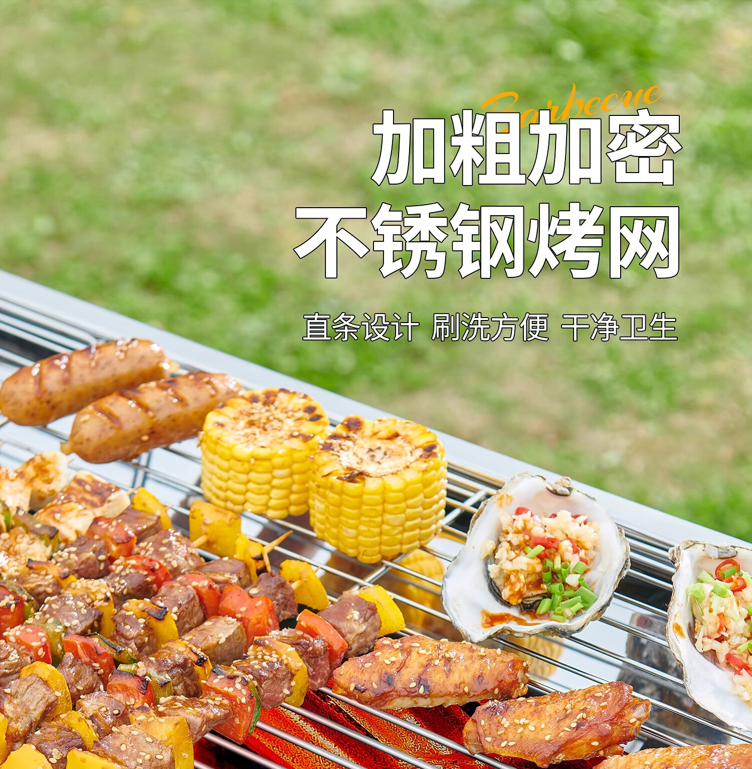 户外烧烤架家用烧烤炉木炭炉子户外烤炉不锈钢烟烤肉架子烧烤用品 超大特厚款【易洗食品级不锈钢网】户外便捷带碳16件套