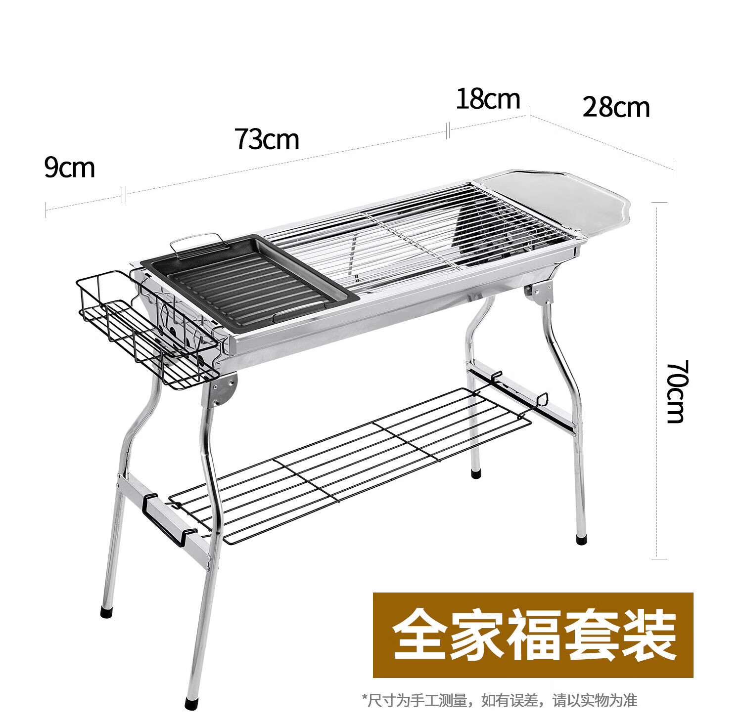 烧烤炉烤炉烧烤架家用户外折叠便携式全套工具庭院不锈钢加厚烤肉 特大号折叠款【食品级不锈钢网】+煎盘+12配件
