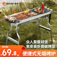 Aoran烧烤炉户外烧烤架木炭烧烤家用碳烤炉便捷不锈钢烧烤炉子 大号:烤网+三件套