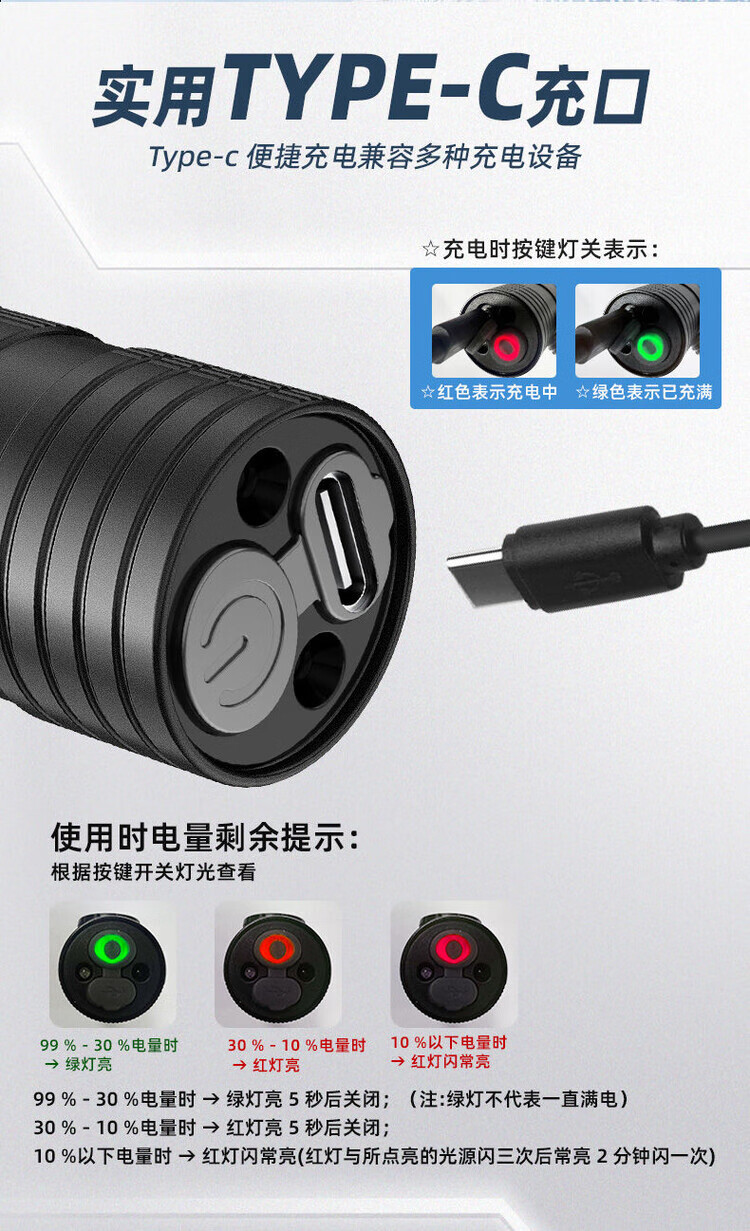 sofirn索菲恩TD07迷你战术勤务手电1300LM直充户外执勤便捷远射指环抱夹 黑色