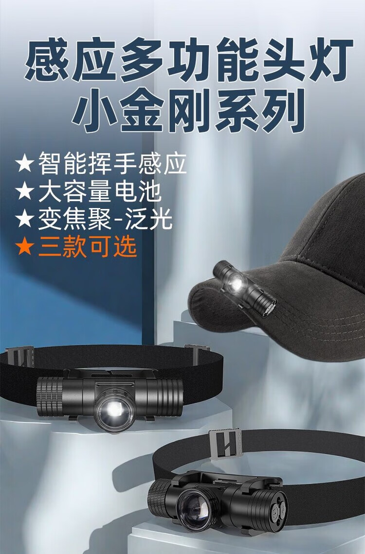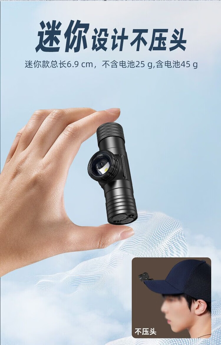 夜眼强光感应头灯帽夹灯小巧可携式轻量防水龙头戴式白光照明红光驱蚊