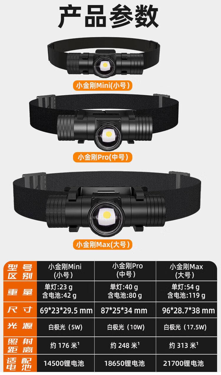 头灯强光超长续航2024新款黑瞳小金刚感应远射防水待机可充电 小金刚Max大号21700电池款 1节工厂标配锂电池纸盒套餐