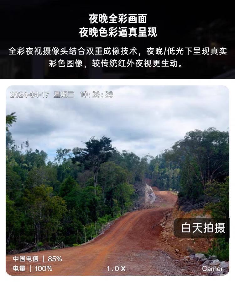 不可思议晚上怎么和白天一样,几天不见太阳也能用,待机时间很长,很清晰,太满意了。