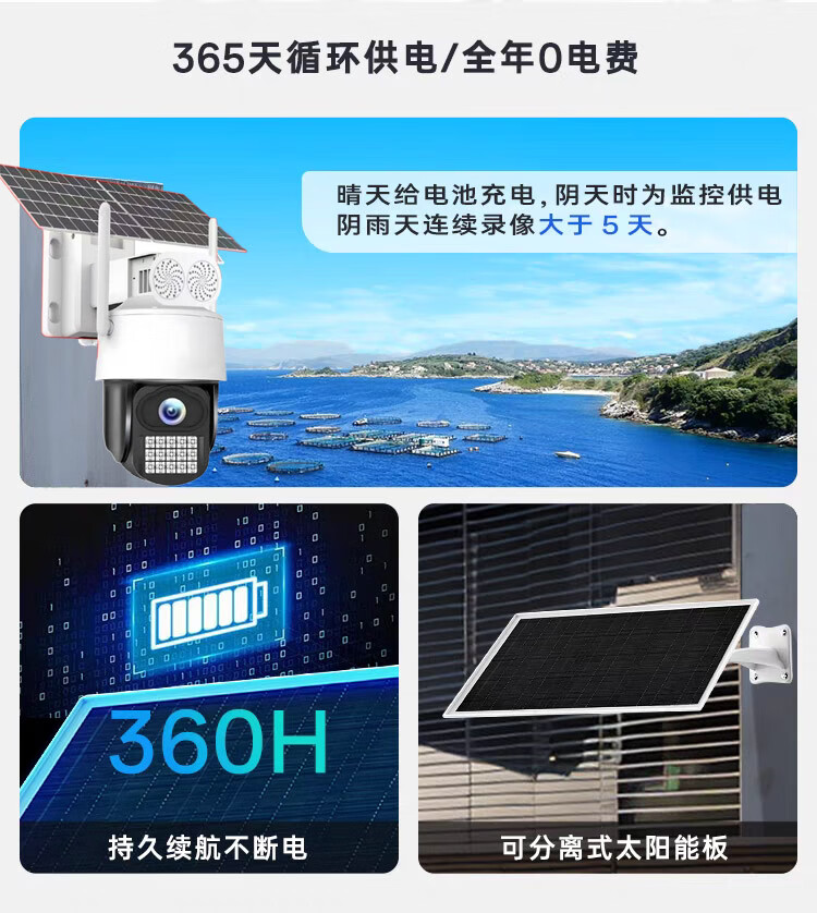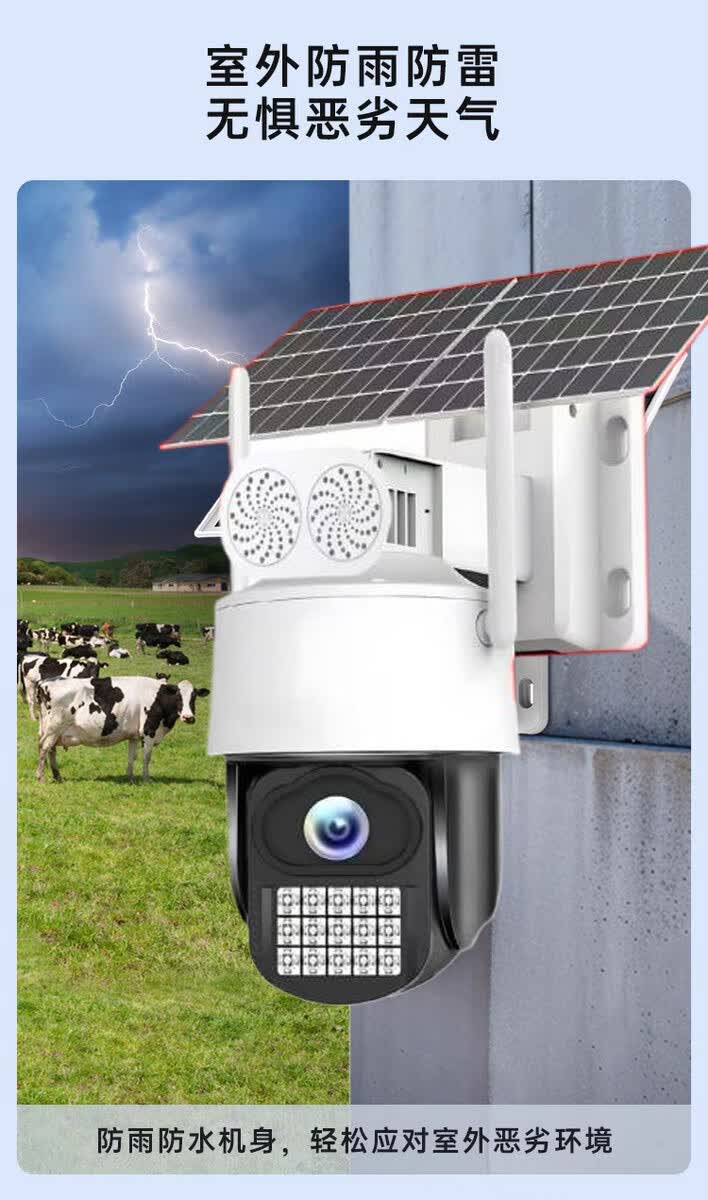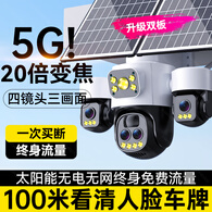 海威曼5G太阳能监控摄像头无电无网终身免流量高清20倍变焦三画面户外360度无死角带夜视全景全彩追踪 【太阳能5G顶配】终身流量+20倍变焦+20W双板