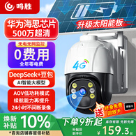 鸣胜AOV太阳能摄像头4G终身免费流量室外农村户外院子防水监控器360度无死角带夜视可对话无需网络