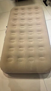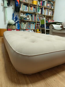 用了幾天才評一下 充氣很快雖然有點吵耳 面料很舒服沒有不適感覺 充氣後很充實但別過度興奮跳上去 是會受傷的(哪個不是我、哈哈)床墊底下有一排排圓盤 充氣後像個吸盤 如果在光滑的表面上便會吸啜住 每當轉身時便 久不久便會有"卜"一聲的吸盤放氣的聲音 睡覺時便覺得有點煩 床墊是舒服的但我想不能和真正的床相比 仰臥睡得久腰就有點酸 只好側睡 承托力有改善的地方 但整體也是不錯的