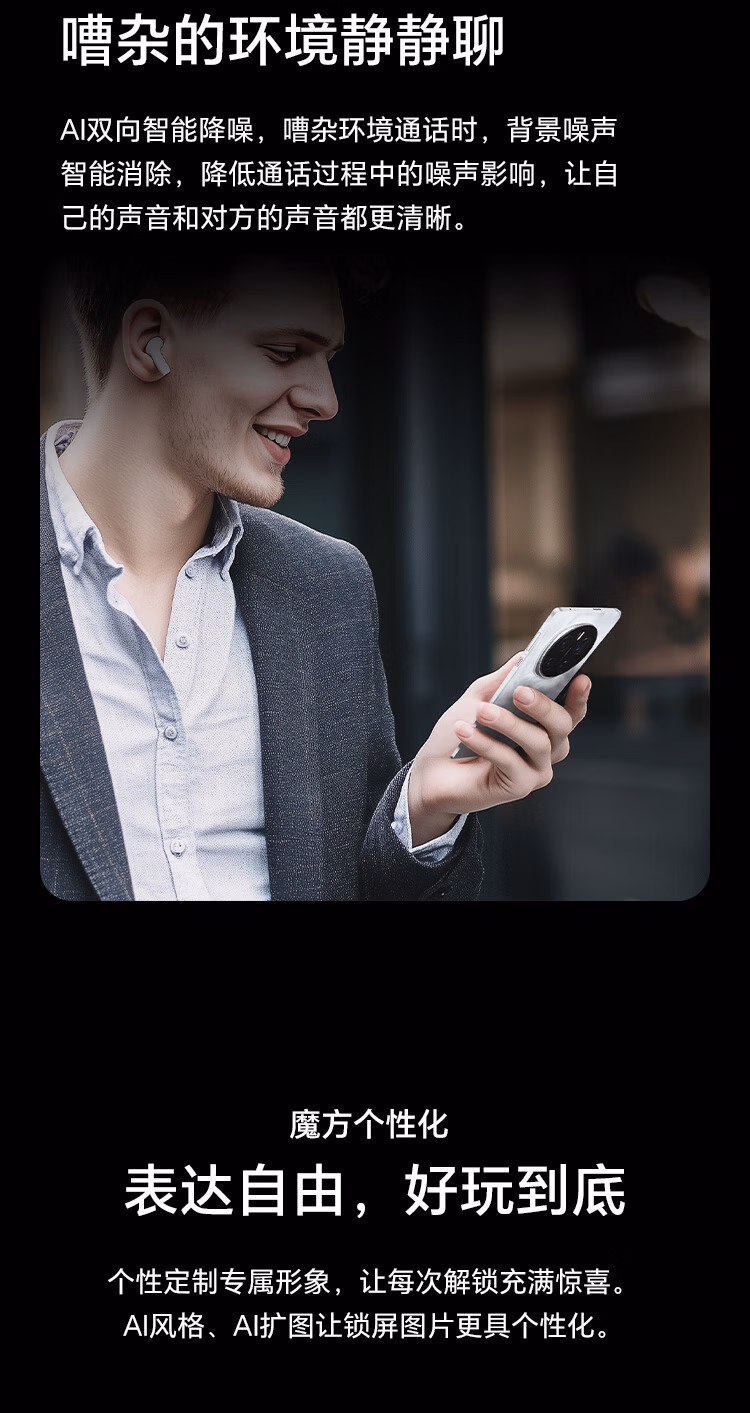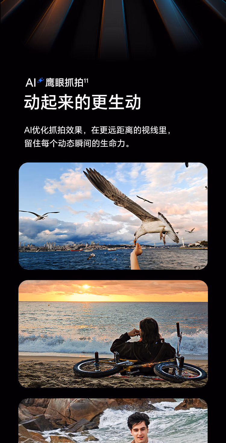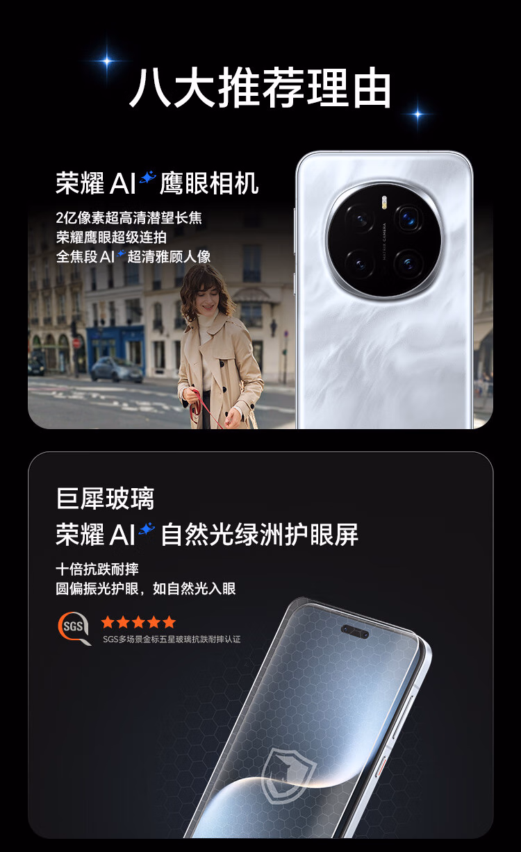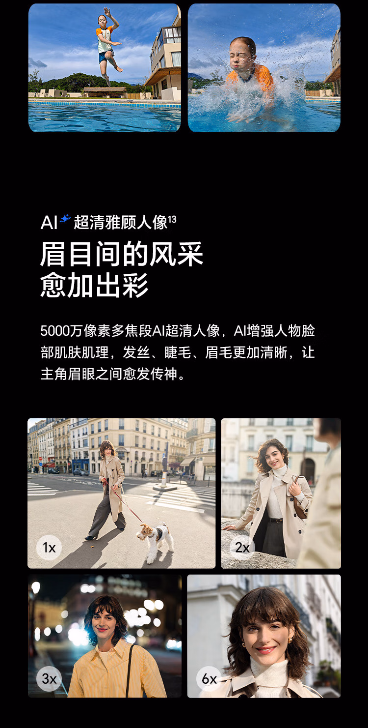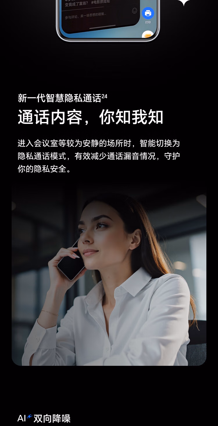 AI大模型,轻薄,LTPO屏幕,高频PWM调光,全焦段影像,潜望式长焦,防水防尘,无线充电,NFC,红外遥控,大底主摄,等深微曲屏