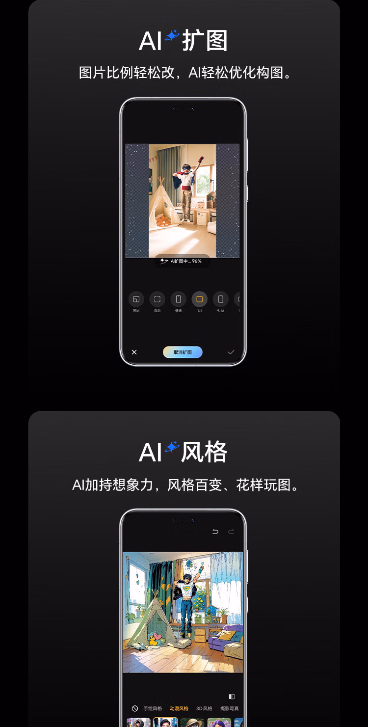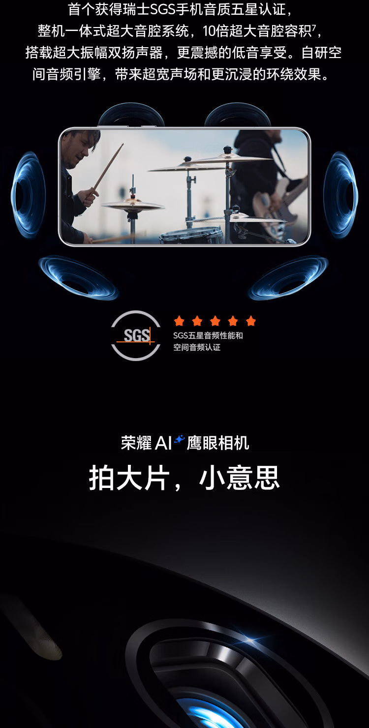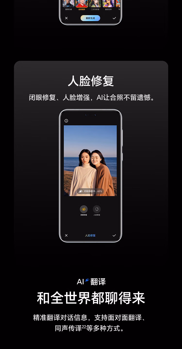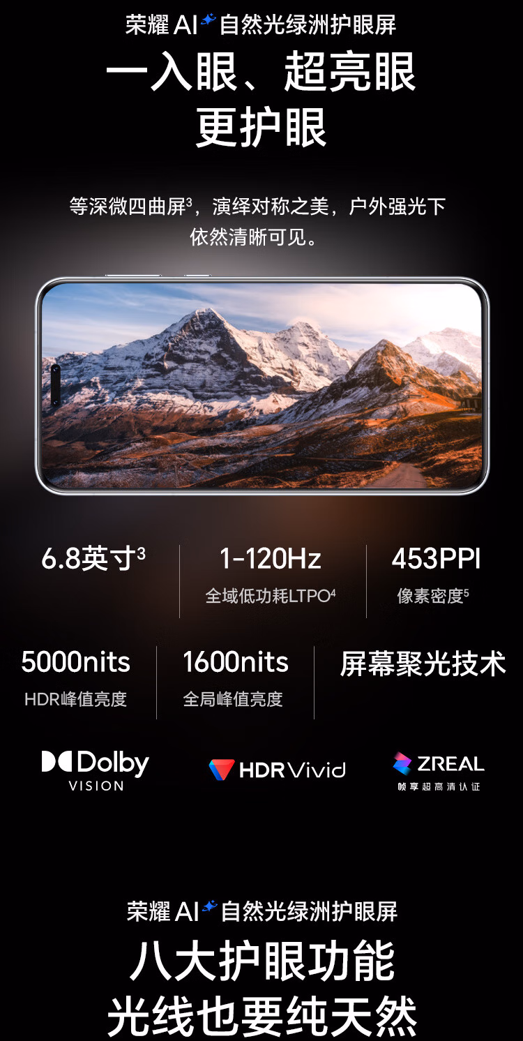 AI大模型,轻薄,LTPO屏幕,高频PWM调光,全焦段影像,潜望式长焦,防水防尘,无线充电,NFC,红外遥控,大底主摄,等深微曲屏