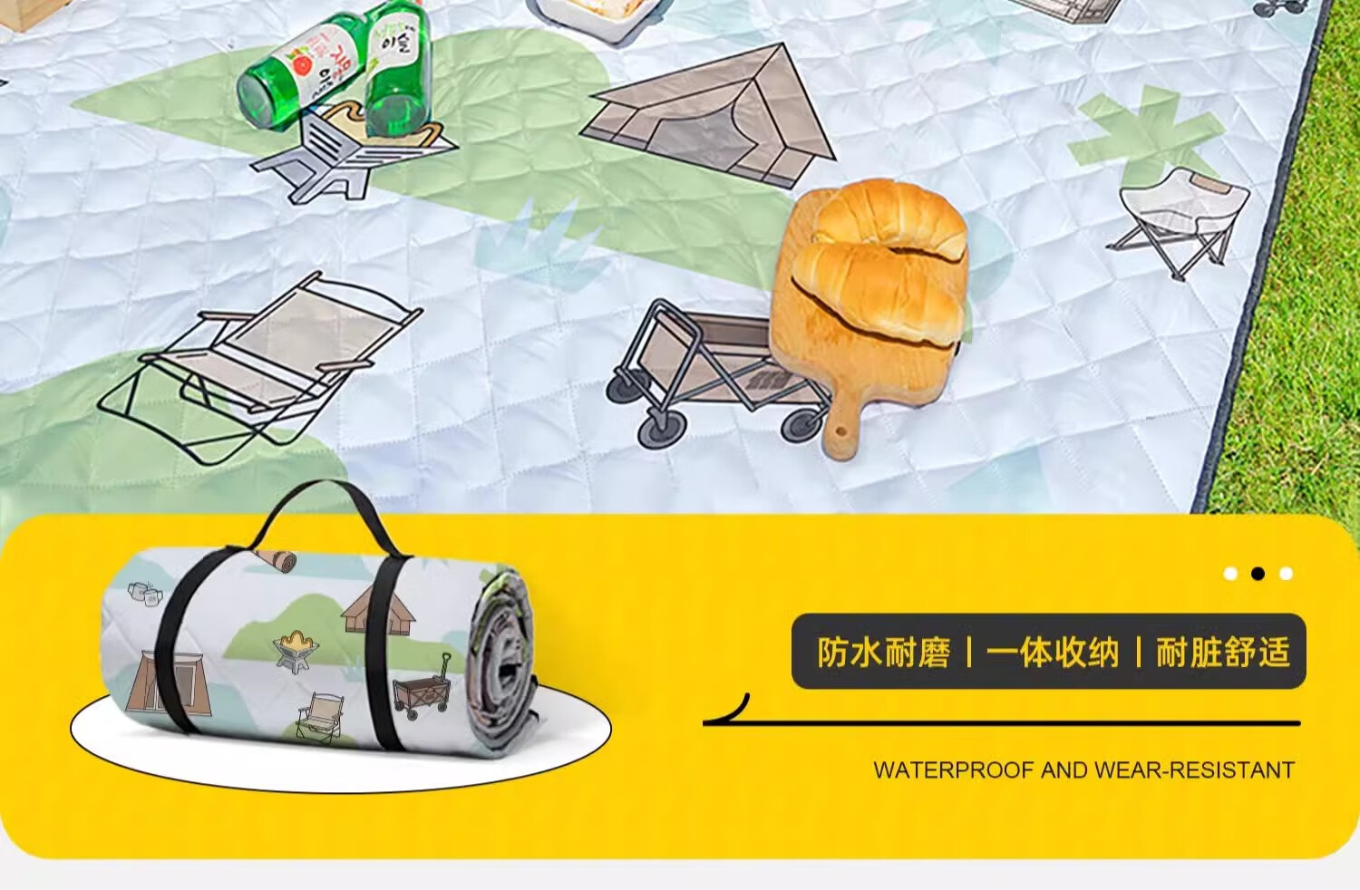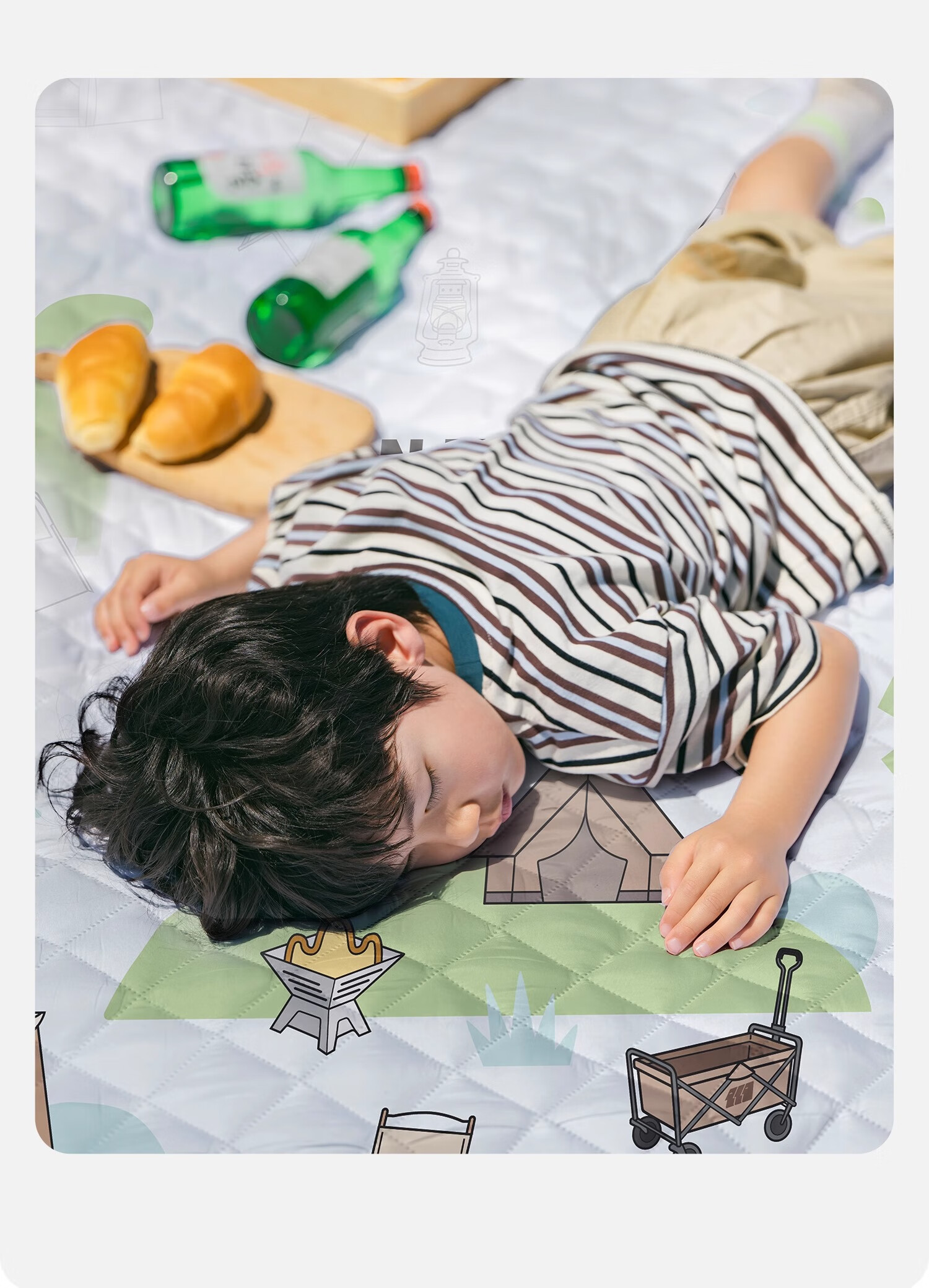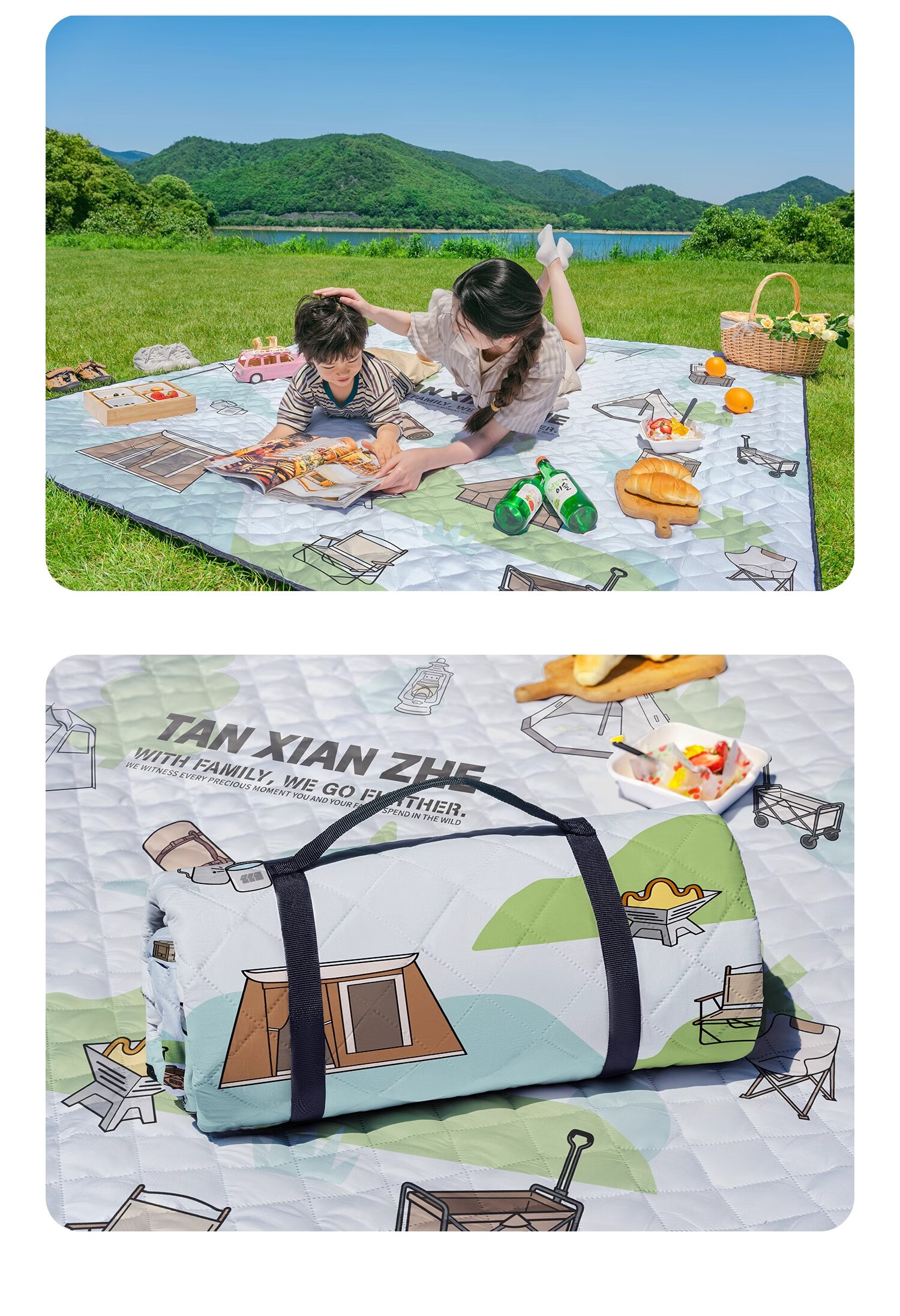 探险者野餐垫户外超声波加厚防潮垫地垫布露营帐篷垫地铺午睡垫沙滩垫子 【6.5mm铝膜】村野小镇150*200cm