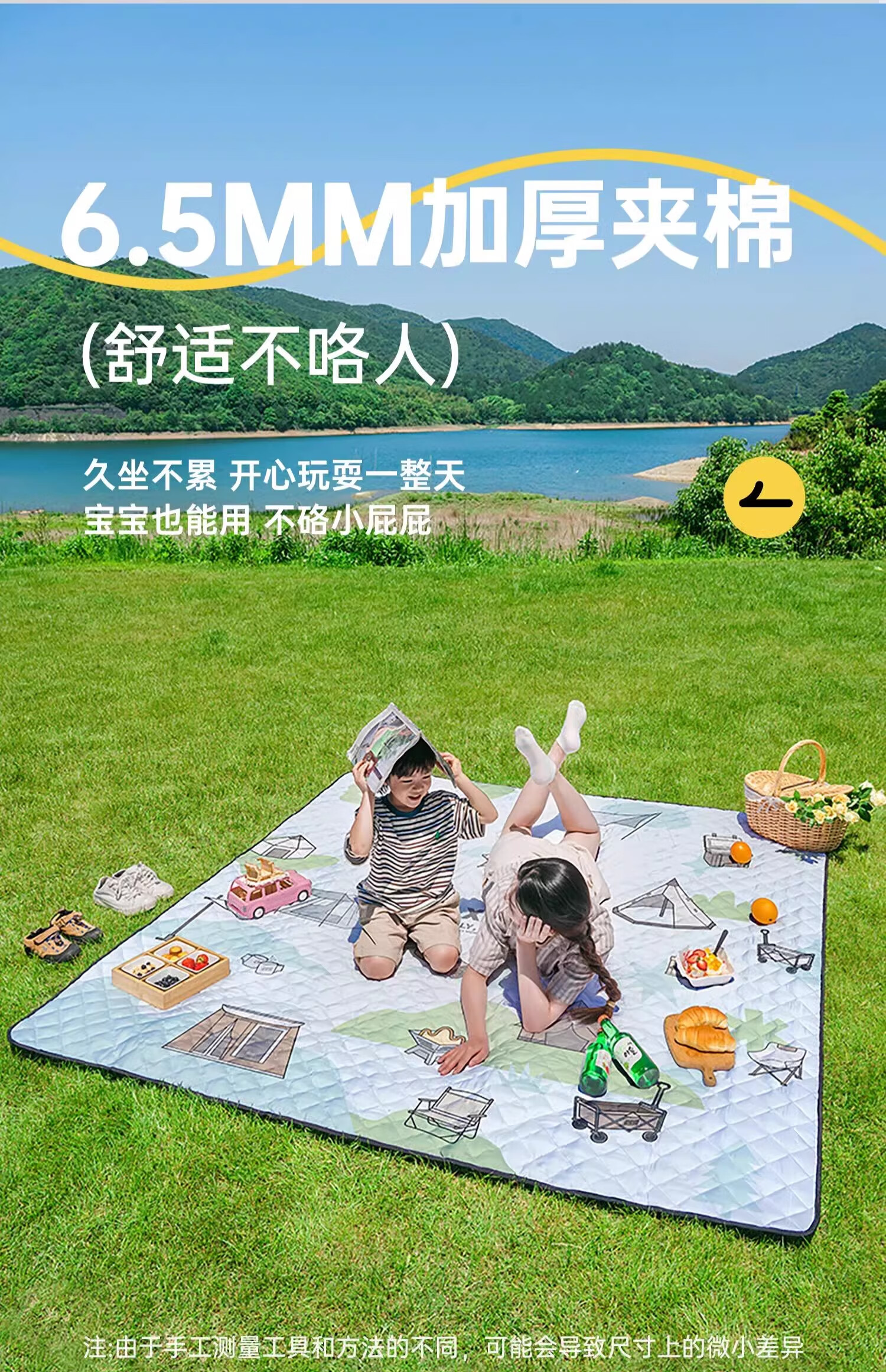 野餐垫很厚,东西很喜欢,质量也很好的,这个价格能买到是真的很划算,放帐篷用也行,单独拿出来用也行,棒