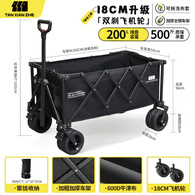 探险者露营车折叠推车户外聚拢型露营车营地车野餐车露营装备摆摊买菜 200L 石墨黑飞机轮【轮宽10CM】