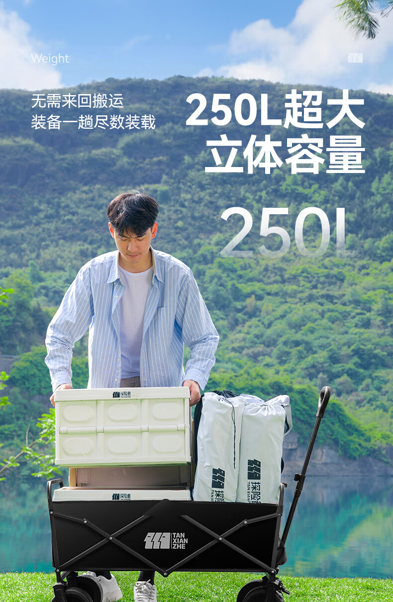 探险者推车可折叠户外露营带拖斗可后开小推车快递小拖车儿童可躺 150L 墨黑后开推车(静音轮)