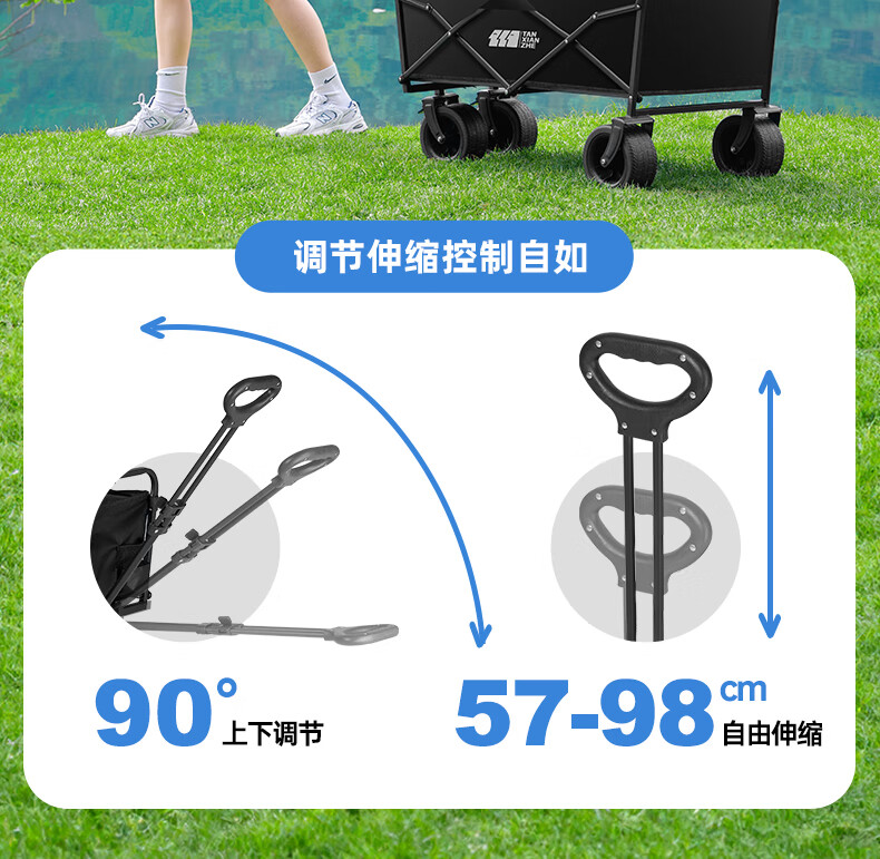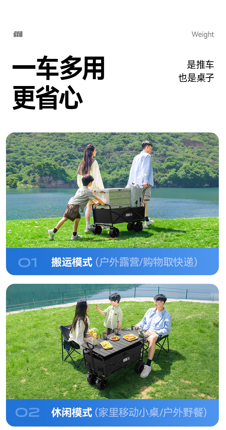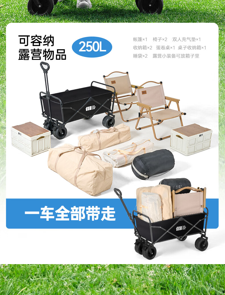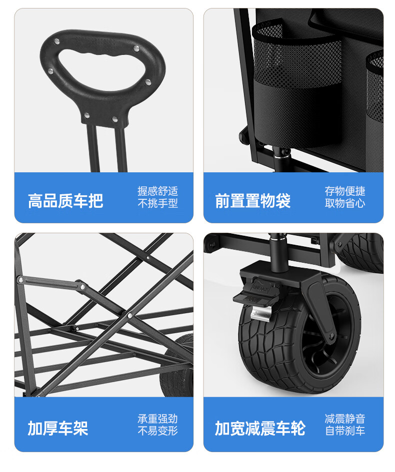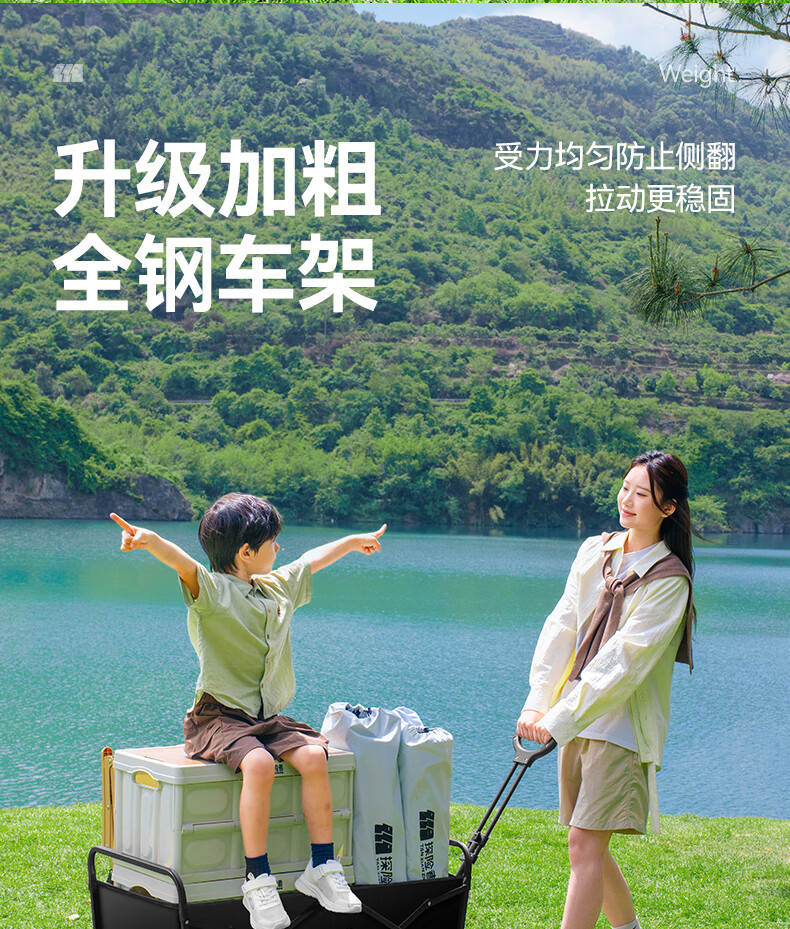 露营推车质量超棒,轻便耐用,使用方便。推车结实稳固,承重能力强,适合各种路况。外观时尚,做工精细,推起来顺滑。