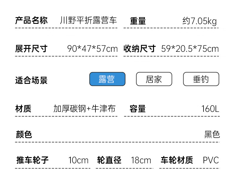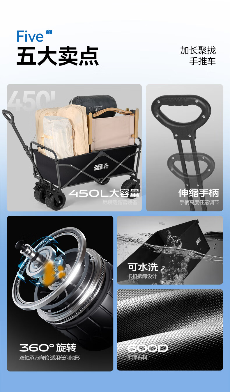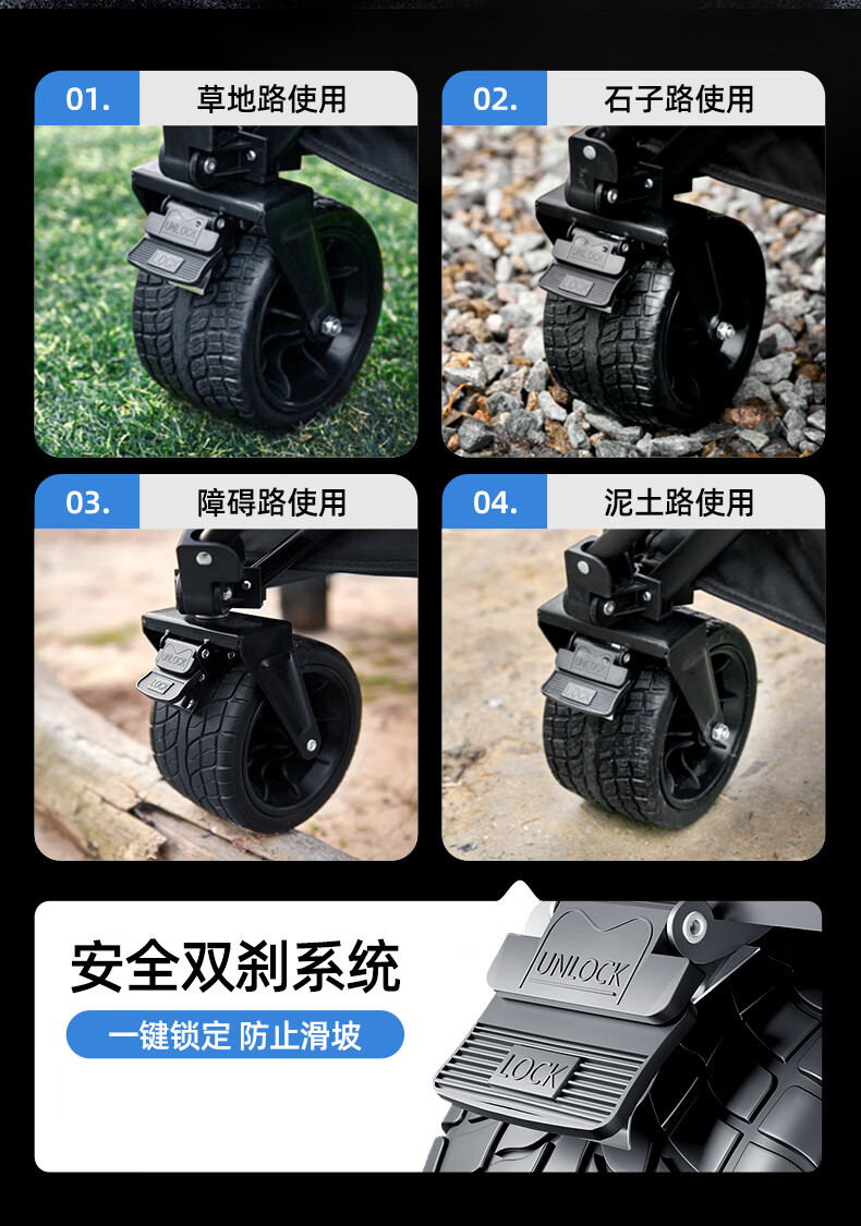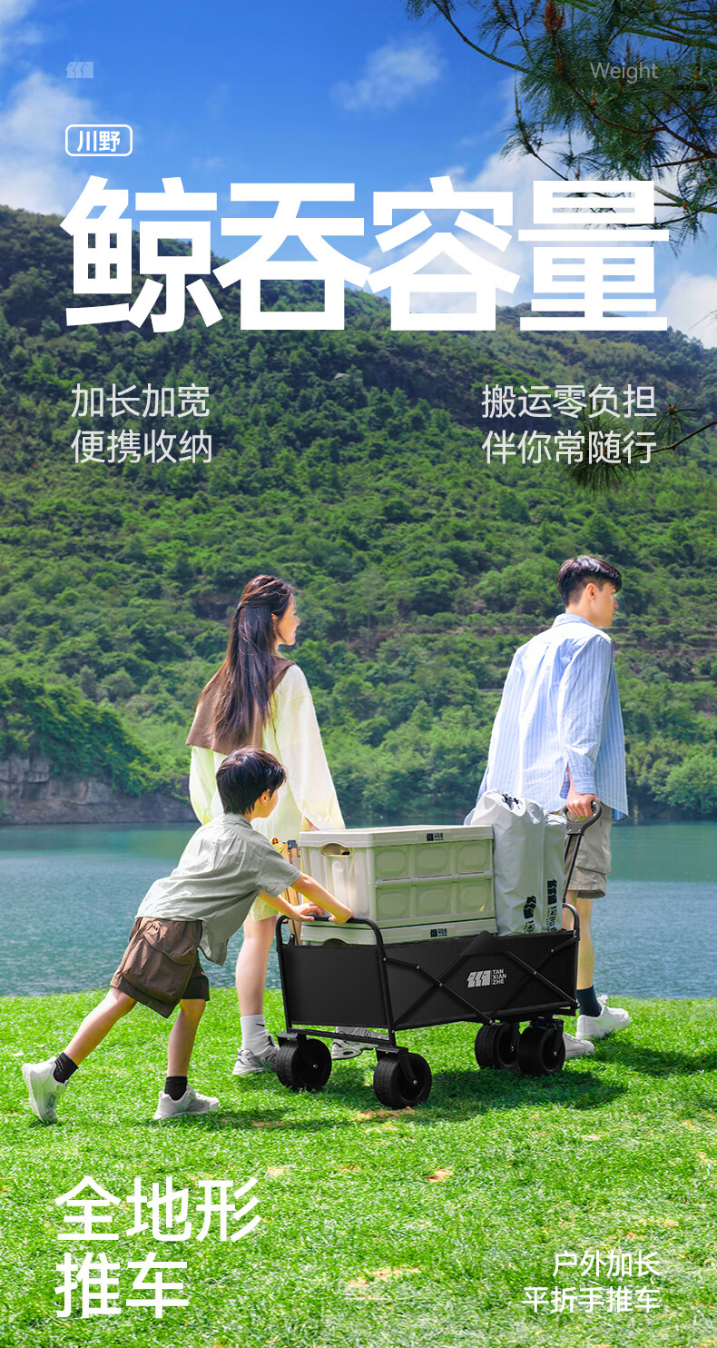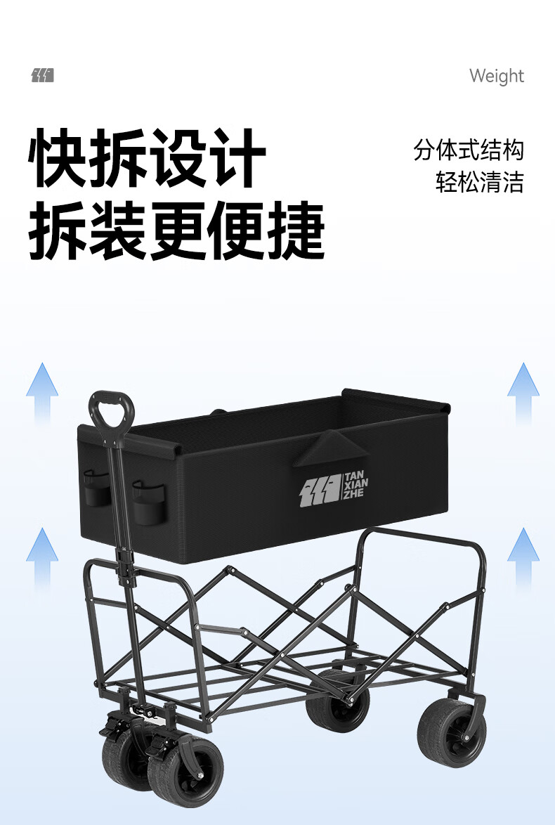 露营推车质量超棒,轻便耐用,使用方便。推车结实稳固,承重能力强,适合各种路况。外观时尚,做工精细,推起来顺滑。