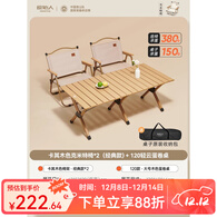 原始人折叠椅户外折叠椅子克米特椅露营椅子野餐椅子便携桌椅野营沙滩椅 120木色桌+木色克米特中号*2