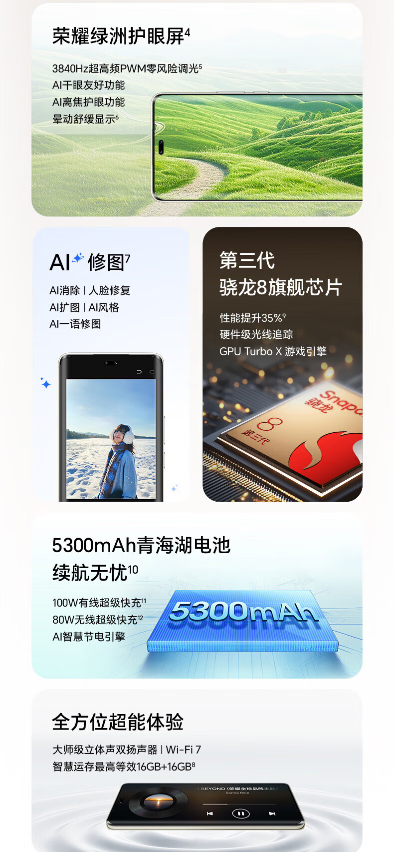 荣耀300Pro/300【24期免息】5G全网通 超级快充 单反级雅顾人像 荣耀绿洲护眼屏 第三代骁龙8 AI拍照 墨岩黑 12GB+256GB【300Pro】 蓝牙套装版|送3年保修+180天只换不修+碎屏险