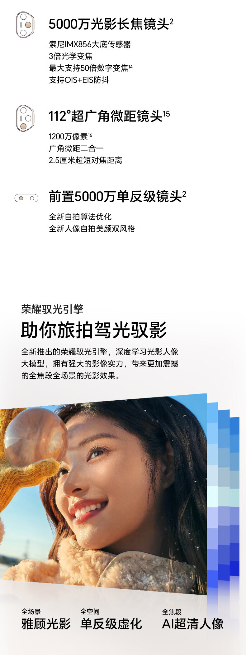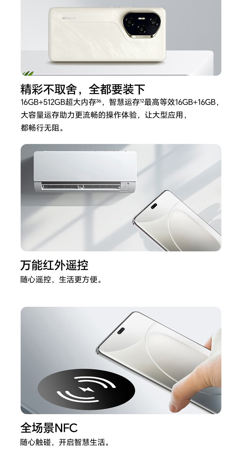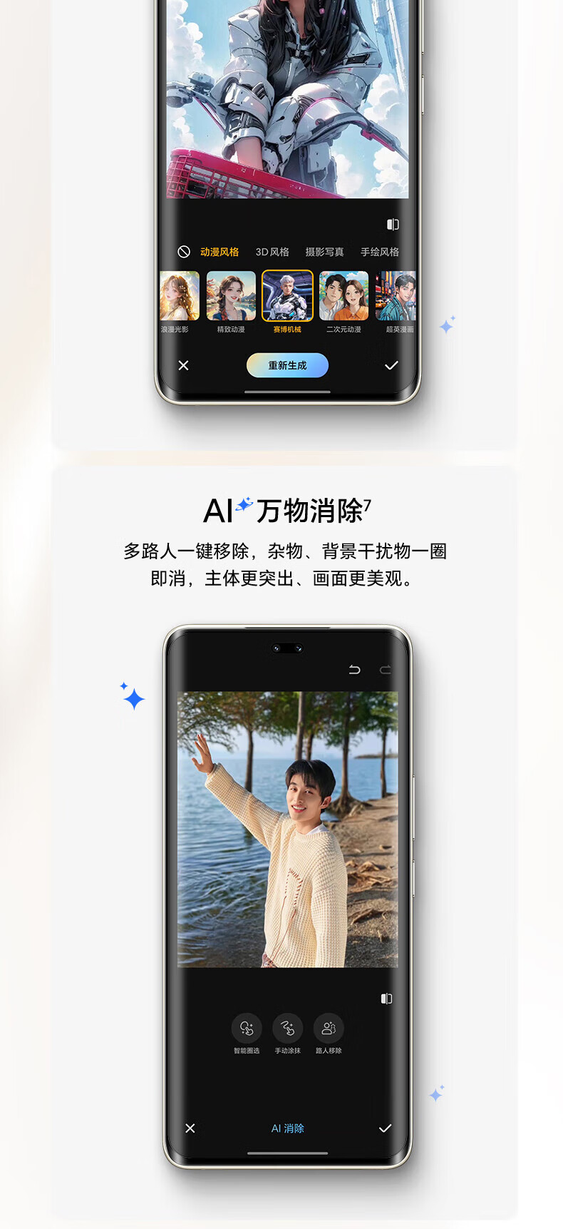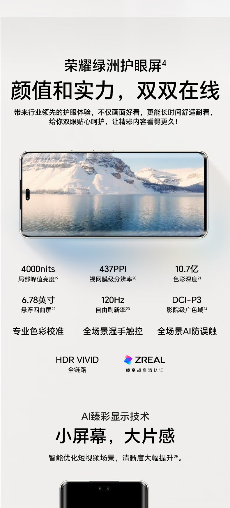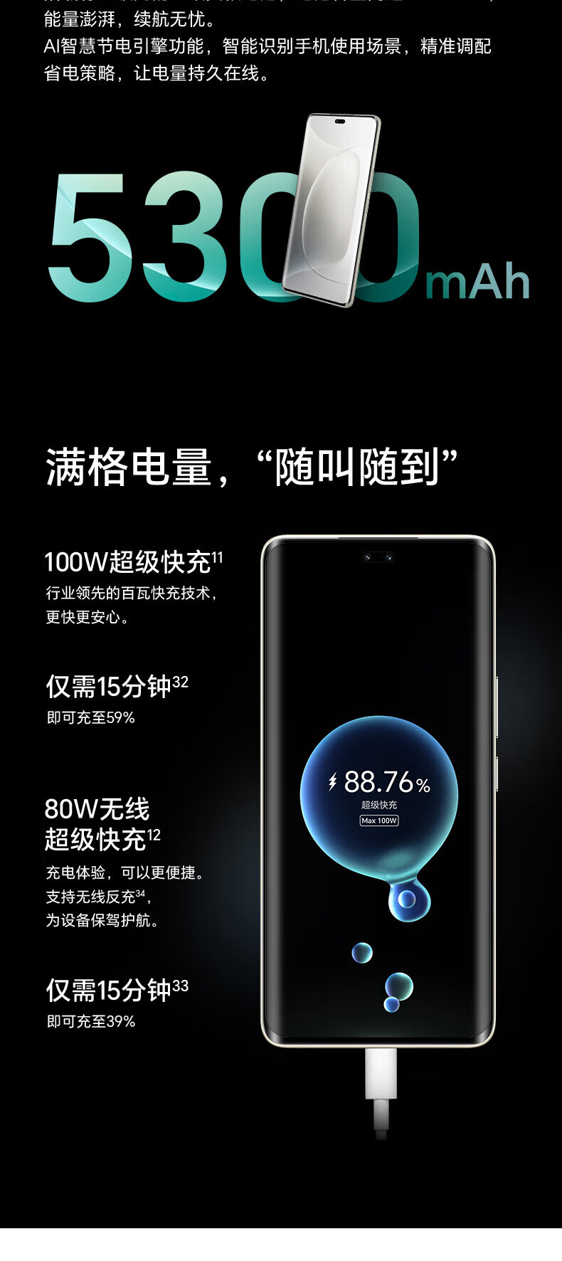 AI大模型,轻薄,高频PWM调光,全焦段影像,防水防尘,无线充电,NFC,红外遥控,大底主摄