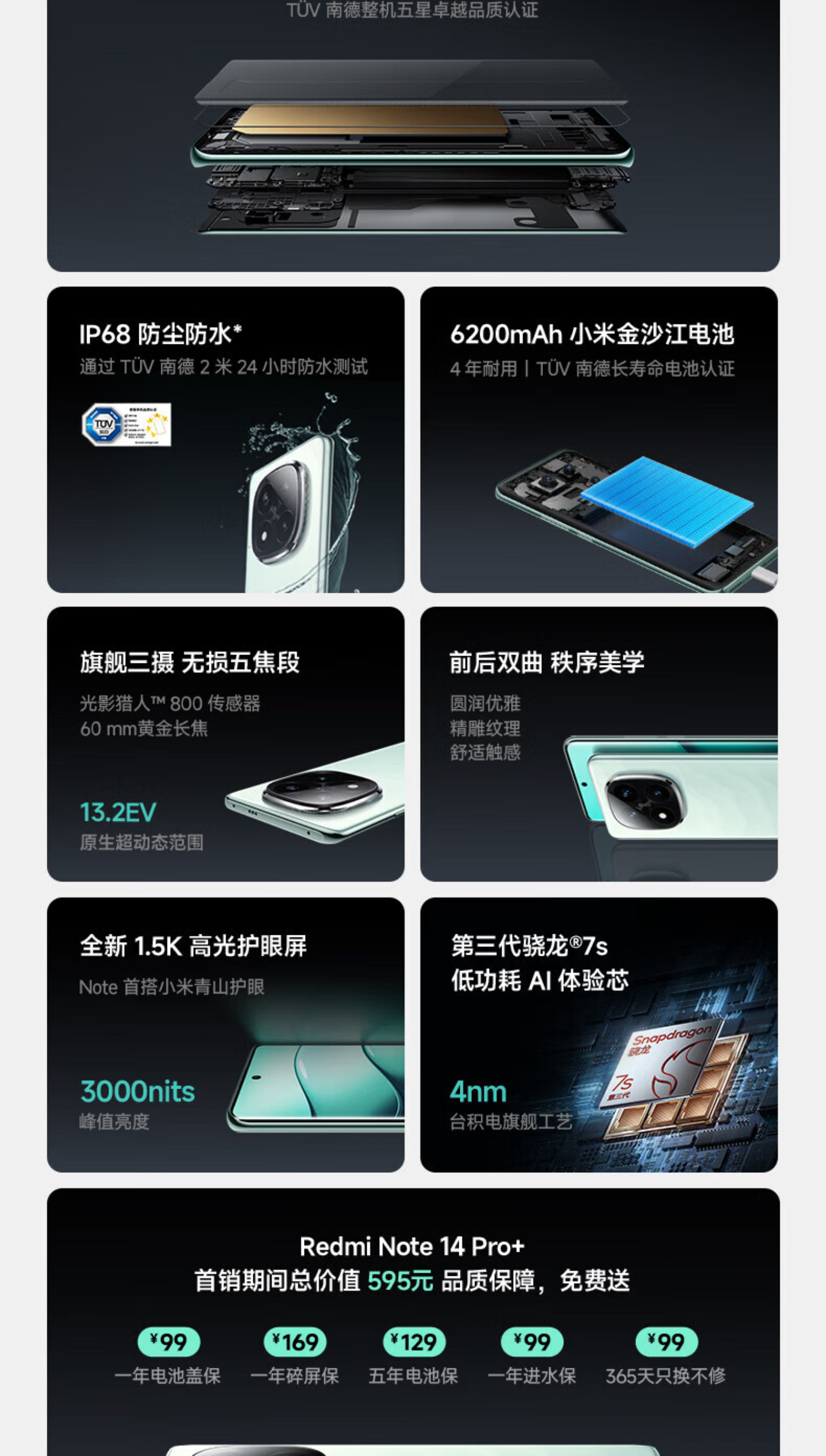 小米(MI)手机红米k80 Pro 新品5G手机 24期免息可选Redmi Note 14 Pro+ 第三代骁龙7s IP68 6200mAh大电量 镜瓷白 12GB+512GB 24期免息【180天只换不修+三年质保+碎屏险】