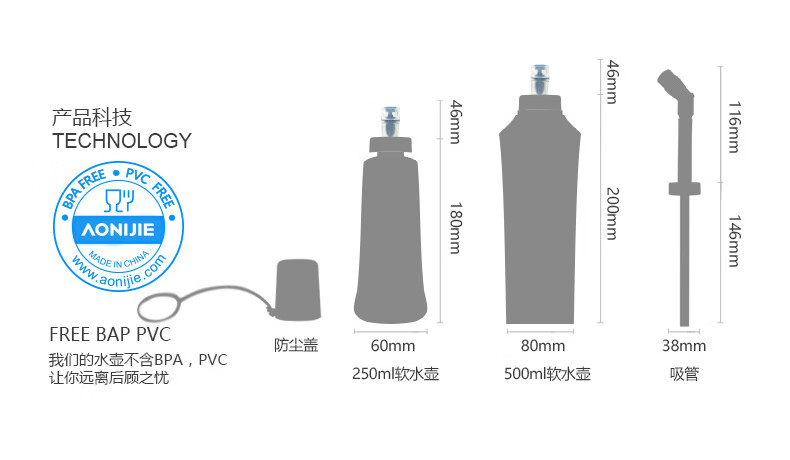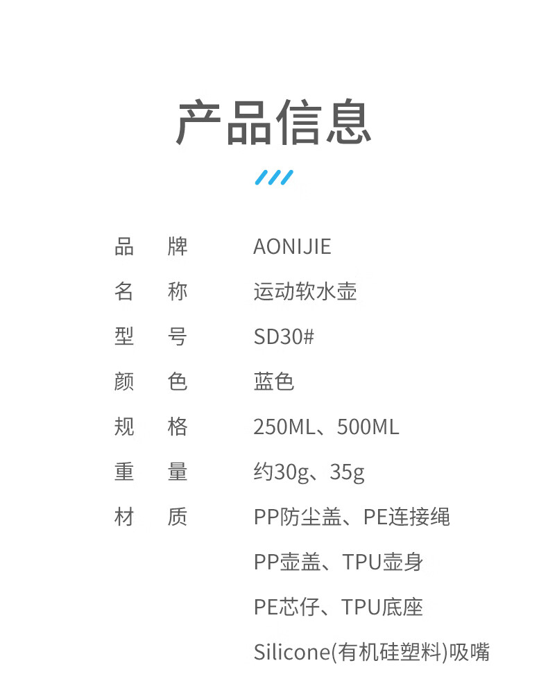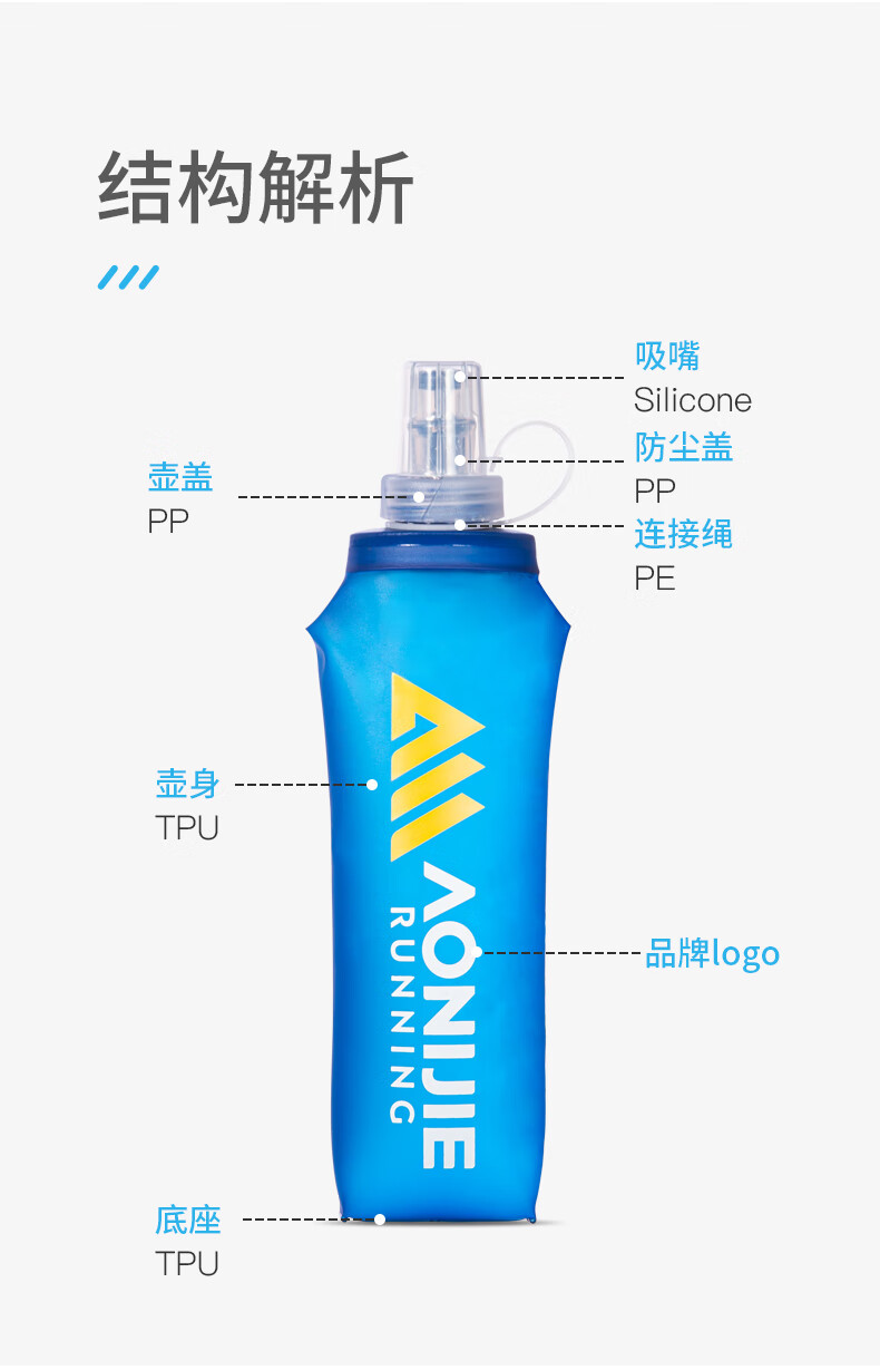 奥尼捷(AONIJIE)运动软水壶TPU硅胶咬嘴软水袋健身跑步水杯可折叠户外越野跑水袋