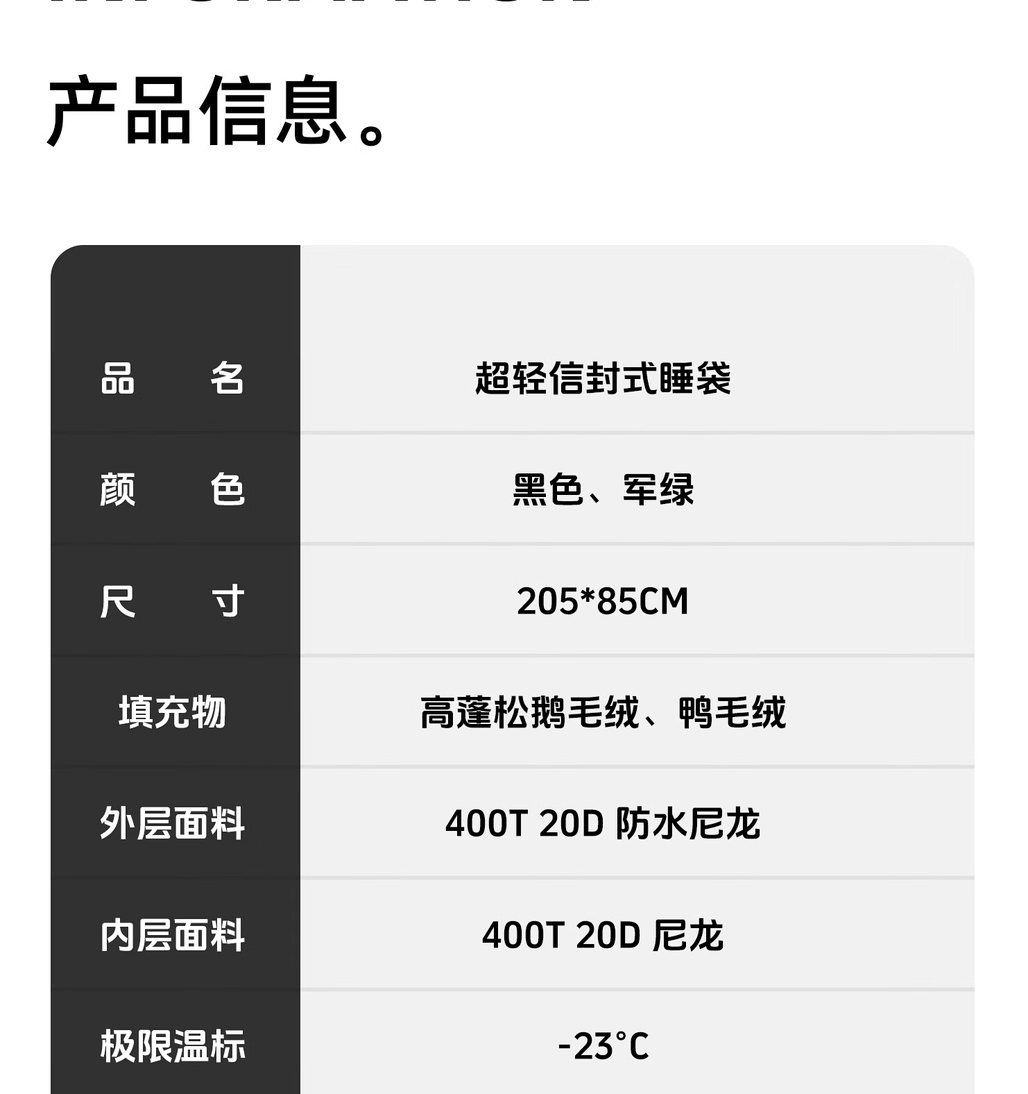羽绒睡袋